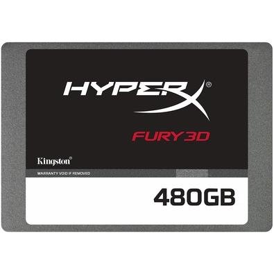 Fury 3D, 480GB, SATA. Leitura de 500 MB/s e gravação de 500 MB/s.