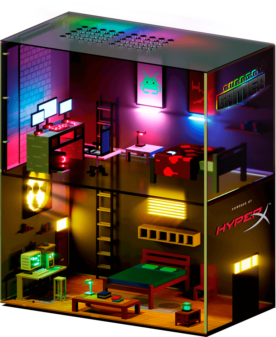 Ganhe um quarto gamer decorado e equipado pela marca, incluindo periféricos e componentes.