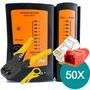 Alicate Crimpar Cabos + Testador de Rede + 50 Conector RJ45 Macho Cat6 + 50 Capas Boot Snaps \n \n Nosso Kit Contém:\n \n 01 Alicate Crimpar RJ45 RJ11 Cabo de Rede Internet e Telefonia e CFTV 01 Desencapador de Cabos de Alta precisão \n 01 Testador de Cabo de Rede Teste RJ45 /RJ11 Internet eTelefone 50 Conector RJ45 Cat6 Macho Tomada de Rede Lan Internet 50 Capa Protetora Conector RJ45 Boot Snap In Plug Cat6\n \n * Abaixo descritivo detalhado por Item: ============================== Alicate Crimpar RJ45 RJ11 Cabo de Rede Telefonia Desencapador O alicate para crimpagem é o produto indicado para profissionais que trabalham com telefonia, infraestrutura e manutenção de redes. O alicate reúne diversas funções e facilita o trabalho desses profissionais, que não precisam mais usar diversos instrumentos para tarefas como cortar, desencapar e fixar conectores \n \n Especificações Técnicas: - Crimpagem de conectores do tipo: RJ45 RJ11 RJ12\n - 03 cavas para conectores \n - 01 lâmina de corte de fio\n - 02 lâminas de decapagem\n -Empunhadura confortável\n -Pino de microajuste que regula a intensidade da força para corte do fio\n -Desencapa diferentes bitolas de fios \n \n ============================================== Testador de Cabo de Rede Teste RJ45 /RJ11 Internet Telefone Especificações Técnicas:\n \n - Design compacto, além de possuir uma instalação super prática, facilitando seu trabalho;\n - Possível analisar se os cabos estão conectados corretamente e a sua polarização;\n - Possui um terminal incluso, permitindo a verificação de cabos de grande extensão\n - Possui um indicador LED para cada par de cabos, garantindo rápida visualização de resultados, sendo no total 8 indicadores de led;\n - Produto: Testador eletrônico