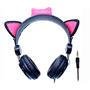 Headphone Com Fio K-mex Cat Ear Ar30, Estéreo, Preto e Rosa