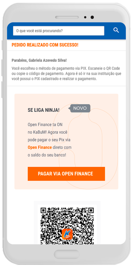 1 Ao escolher o PIX para o pagamento da sua compra no KaBuM!, um QR Code será gerado na tela de conclusão do seu pedido.
