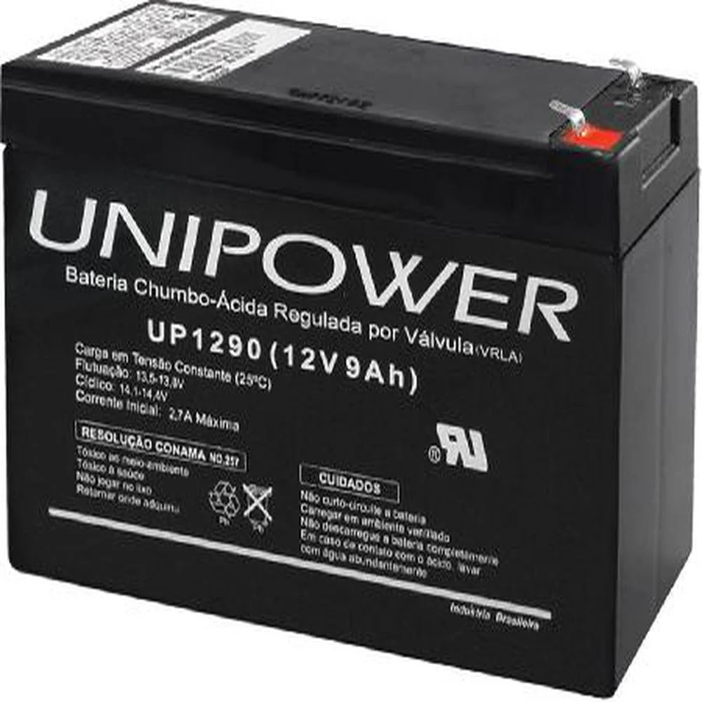 Tensão Nominal: 12VCapacidade: 9,0Ah para 20horasDimensões: Comprimento 150 x Largura 64 x Altura 98 mm)Vaso em ABSTerminal Faston 187Chumbo-ácida selada regulada por válvula, UL, ISO 9002Garantia: 365 DiasEspecificações TécnicasImagem Grande : -Garantia : 03 meses contra Defeitos de Fabricação...