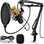 Microfone Condensador Knup KP-M0010, Com Braço Articulado e Shock Mount, Ideal para Podcasts, Youtubers, Stream e Live