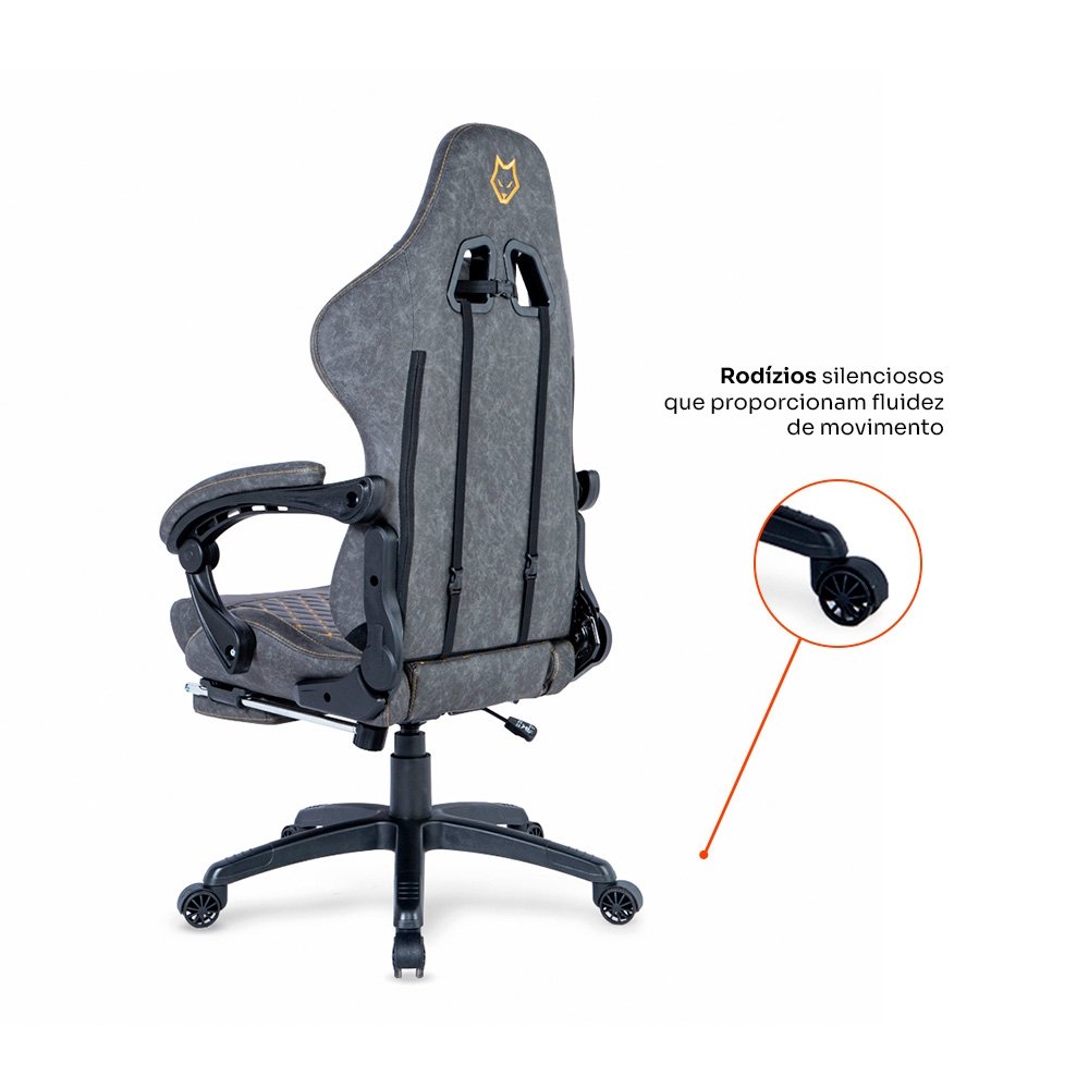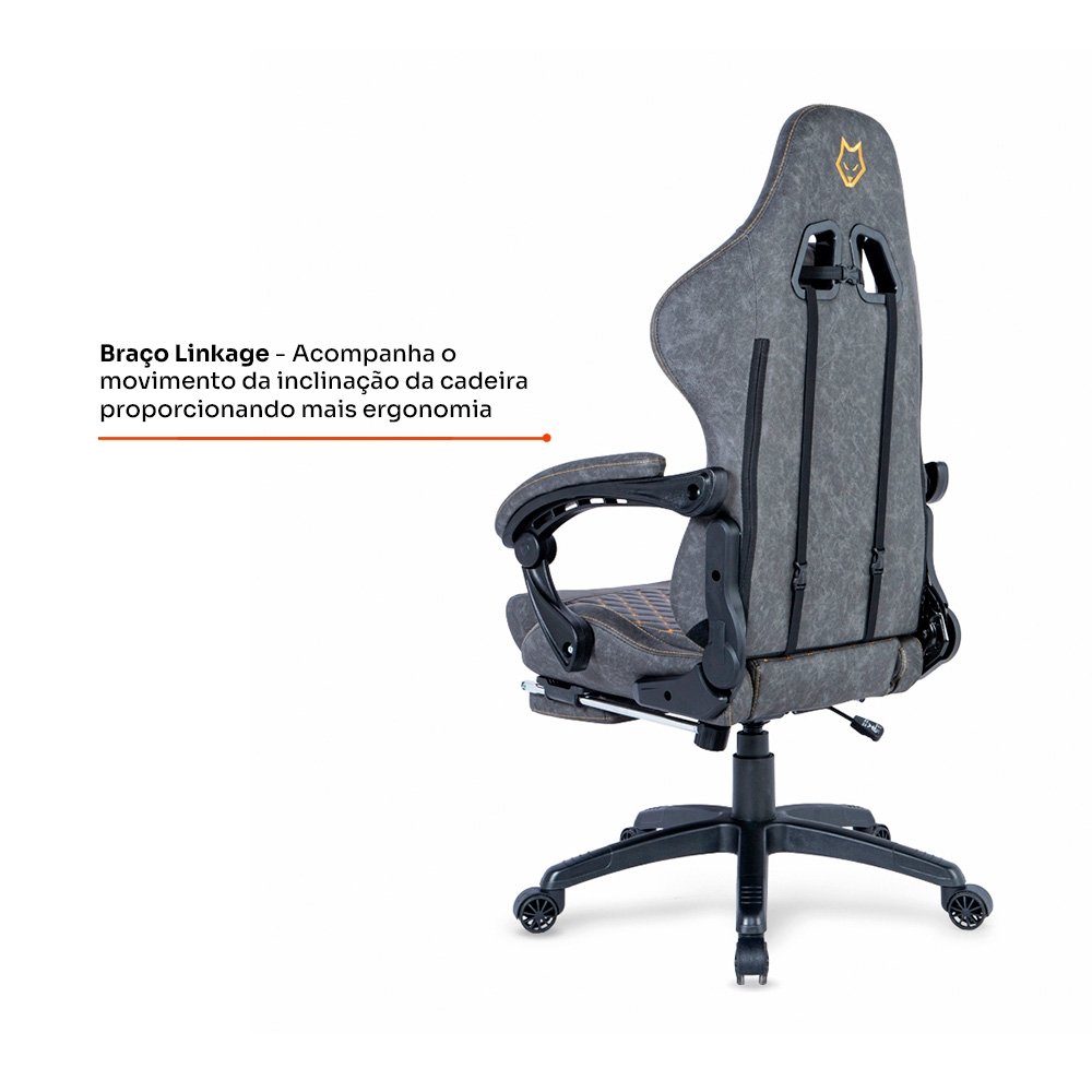- Ergonomia e Conforto: Reclínio de 90° a 150° e apoio para os pés retrátil, com altura ajustável em até 8 cm para longas sessões