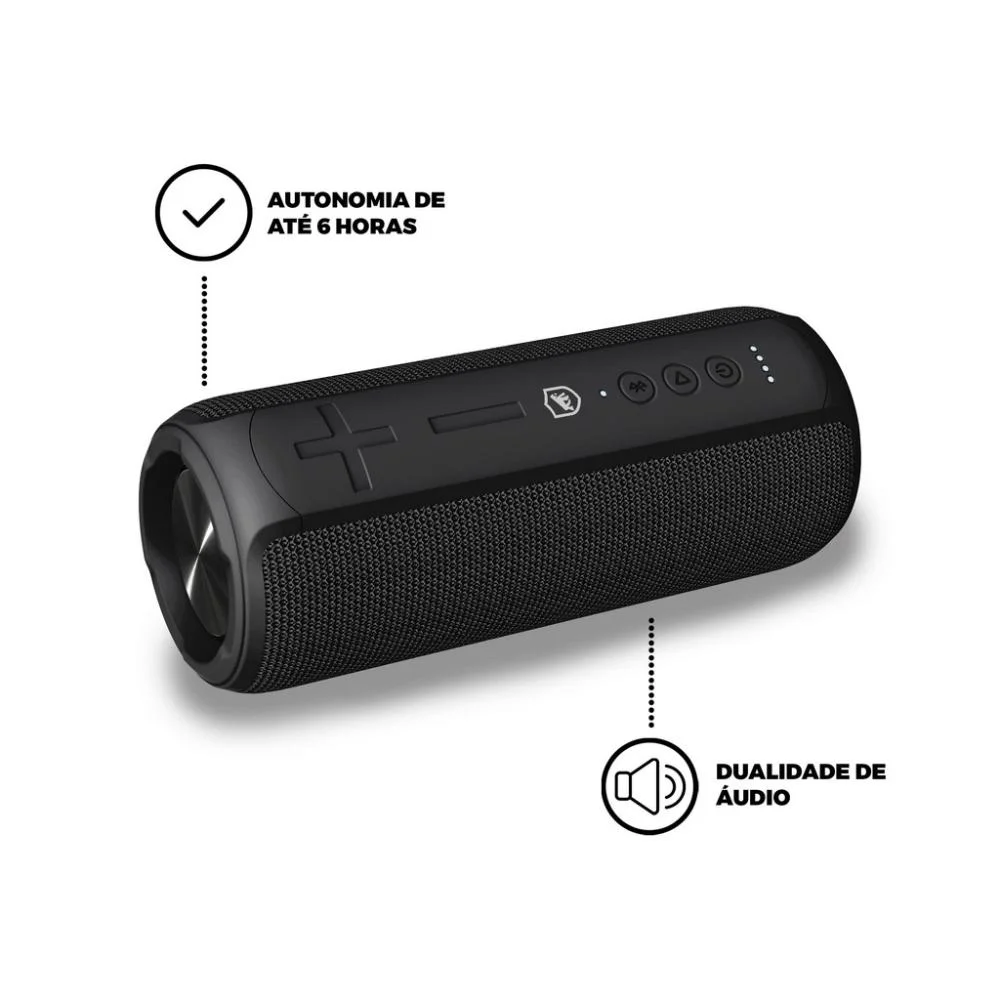 Caixa de Som Bluetooth Atomic 20w - Gshield. No quesito potência e qualidade do som, a Caixa de Som Bluetooth Portátil Atomic é o que há de melhor no mercado. Com um design elegante e prático, o equipamento possui alto falante 360°, que proporciona uma experiência única na reprodução de músicas. O tamanho e o peso do dispositivo também foram pensados com o intuito de facilitar sua portabilidade. Como se não bastasse, a caixa de som atomic ainda é à prova d?água, possui certificação IPX7 e resiste a exposição acidental à água de até 1 metro por até 30 minutos. É a caixa de som perfeita para te acompanhar em qualquer aventura! Se o objetivo é festejar até o sol se pôr, ir à praia ou fazer uma festa na piscina, você encontrou o aparelho de som certo. Graças a sua bateria 2200mAh, a caixa de som Atomic funciona por até 6 horas sem precisar carregar...