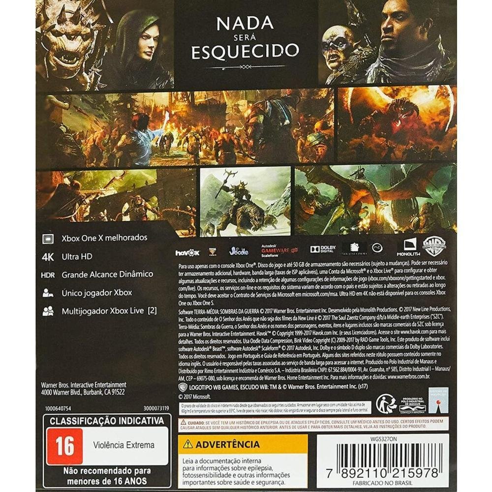 Terra-média: Sombras da Guerra é a sequência de Terra-média: Sombras de Mordor, que conta a história do forjamento do anel, além de mostrar um pouco da história de Mordor, Balrog e do retorno de Sauron. Trazendo uma aventura épica recheada de batalhas insanas e a aventura que a serie já traz aos jogadores e uma aventura épica. O jogo traz um universo em mundo aberto, possibilitando ao jogador explorar e derrotar diversos inimigos. A ambientação e os personagens serão todos moldados pelas ações e decisões do jogador, criando um mundo único a cada experiência de game play. O protagonista continuara sendo Talion e seu objetivo será o de derrotar o Sauron...