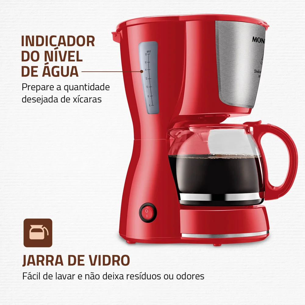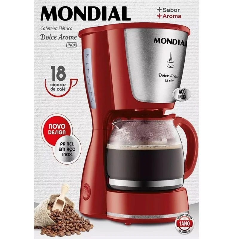 A hora do café a qualquer momento. A Mondial traz sempre boas soluções para seu dia a dia e a Cafeteira Elétrica Mondial Dolce Arome C-35, combina beleza, praticidade e muito aroma para seu café da manhã, pós almoço ou café da tarde. Com capacidade para 18 xícaras, para acertar na medida, a lateral do tanque de água vem com indicação de quantidade de xícaras para fazer, além disso, possui porta-filtro removível, com filtro permanente, que dispensa o uso de filtro de papel. Fácil de usar, basta colocar a quantidade de água desejável, o pó de café de sua escolha dentro filtro, abaixar a tampa e, em poucos instantes, terá café fresquinho para se servir. Mas se você não quer esperar passar toda a quantidade de água, durante o processo é possível servir sem fazer sujeira, com o sistema corta-pingo, permite que retira a jarra mesmo durante o processo de preparo do café. Bonita, moderna e colorida, Cafeteira Elétrica Mondial Dolce Arome C-35 traz sabor, praticidade e aroma aos seus dias.