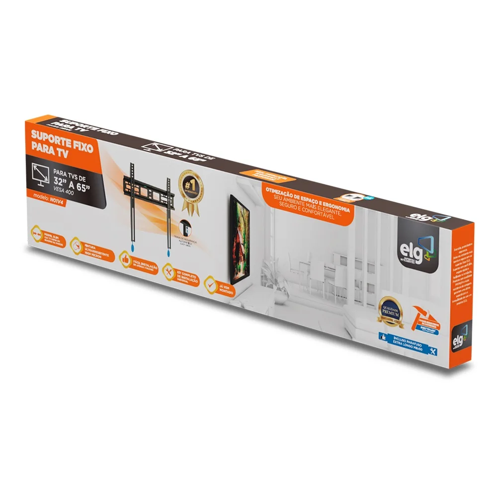 Suporte fixo de parede elg para tv 32” a 65” preto n01v4