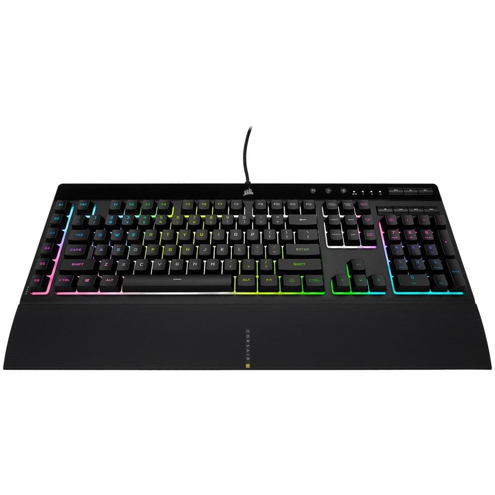 O teclado gamer CORSAIR K55 RGB PRO XT ilumina seu desktop com a luz de fundo RGB dinâmica por tecla e ajuda em suas jogadas com as seis teclas macro dedicadas.