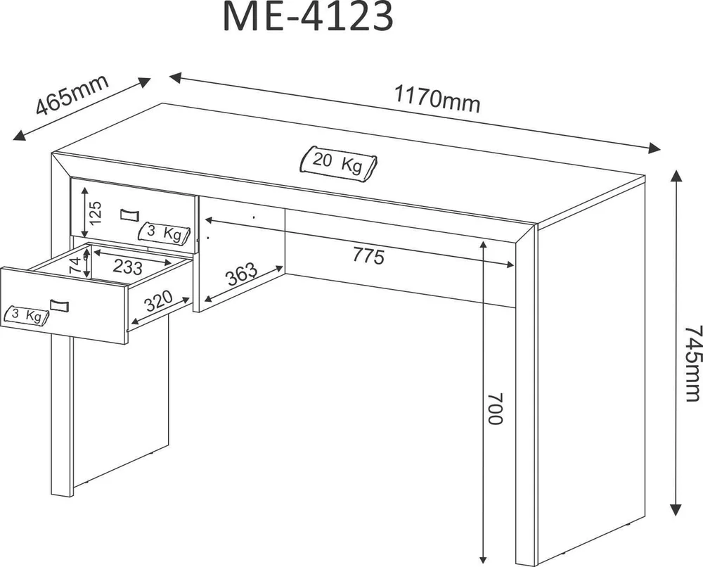 Mesa Escritório Tecnomobili ME4123, possui 2 gavetas, material em MDP, acabamento em BP. A Tecno Mobili tem o compromisso permanente com a qualidade de seus produtos. Nosso período de garantia é 03 (três) meses contra defeitos de fabricação.