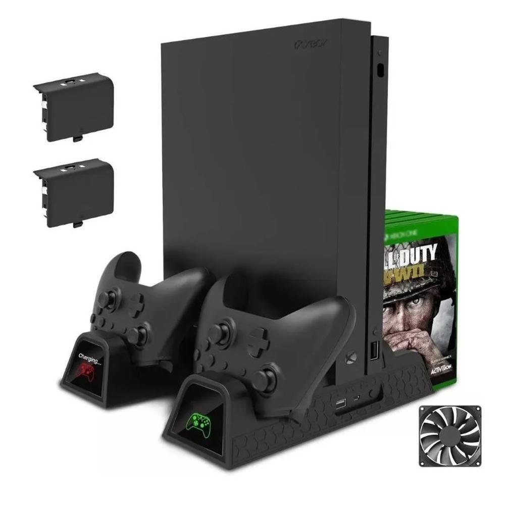 DESCRIÇÃO Chegou a hora de se divertir muito mais utilizando seu Console. prolongando a vida útil e organizando seus jogos. Com a nova base multifuncional, além de possuir dois coolers para disspação de calor do console, você conta com 2 Slots para organizar e guardar seus games, além de uma dock de carregamento para até dois controles. Demais né? O mais queridinho da marca OIVO, feito com Material ABS, robusto e elegante e com anti-slip em EVA para evitar arranhões e escorregamento do console, com ajuste para seu X-ONE/X-ONE X/ X-ONE S. Muito fácil de usar, é só conectar o cabo qua acompanha e se divertir. Até 600mA para o carregamento dos controles (300mA cada controle). Só aqui na Ponto do Nerd você encontra os melhores acessórios de games e consoles com o melhor preço e garantia de um produto de qualidade. ATENÇÃO: Esse anúncio é referente a Base com cooler para Console, o console na imagem é ilustrativo para visualização da utilização antes da compra, NÃO acompanha o console e nem os jogos ilustrados. ESPECIFICAÇÕES Cooler: 2 Velocidade Máx do Cooler: 3500± 10% RPM, Máx saída de ar: 12.6 Cfm Cor: Preto Compatibilidade: X-One, X-One X, X-One S Modelo: IV-X0011 Tempo de Carregamento Controles: ~2.5-4 Horas (Dois controles ao mesmo tempo Entrada: DC5V -- 2.4A 12W USB Origem: China Cabo: USB 35cm GARANTIA 3 meses contra defeitos de fabricação * Imagens meramente ilustrativas. Selos, ilustrações ou informações que constam na embalagem podem ser diferentes do produto disponível em estoque.