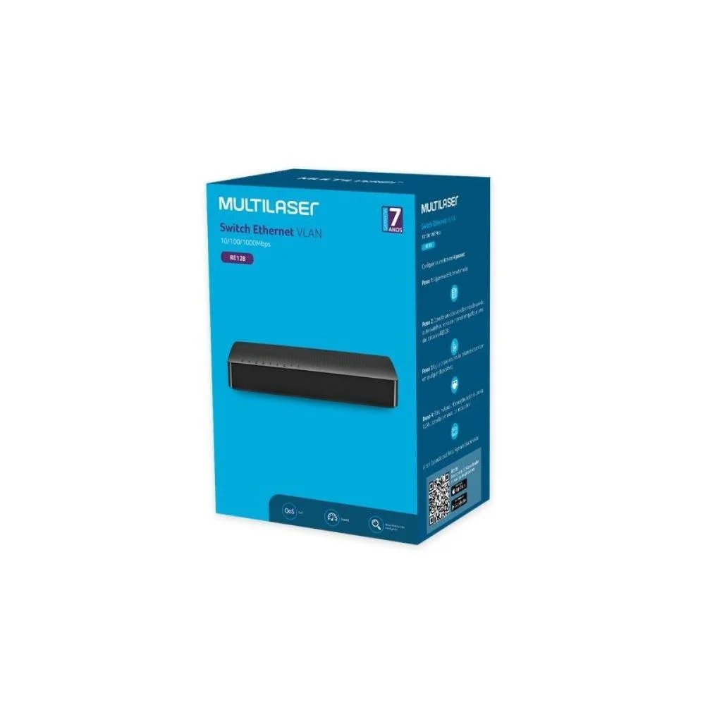 Switch 8 Portas Gigabit 10/100/1000 Vlan Multilaser - RE128 O Switch RE128 permite conectar diversos dispositivos através de suas portas e construir redes de comunicação de dados, integrando-os entre diversos aparelhos e proporcionando o compartilhamento de internet para os demais dispositivos conectados a ele. - Todas as portas oferecem velocidade superior a 1000 megabits por segundo; - As portas identificam automaticamente a linha paralela e linha de intersenção; - Crie regras para organizar e priorizar as principais funções de sua conexão; - Não precisa instalar, basta conectar para começar a utilizar.