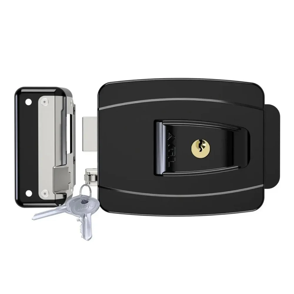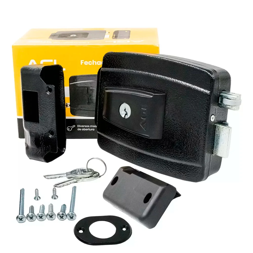 Fechadura Elétrica para Portas, Portões de Ferro, Madeira e Alumínio. Compatível a todos os modelos de Porteiros Eletrônicos com acionamento de Fechadura.Abertura reversível, Abre para dentro ou para fora esquerda ou para a direita, é só mudar a lingueta.Qualidades do Produto:» De fácil instalação» Para portões leves ou pesados