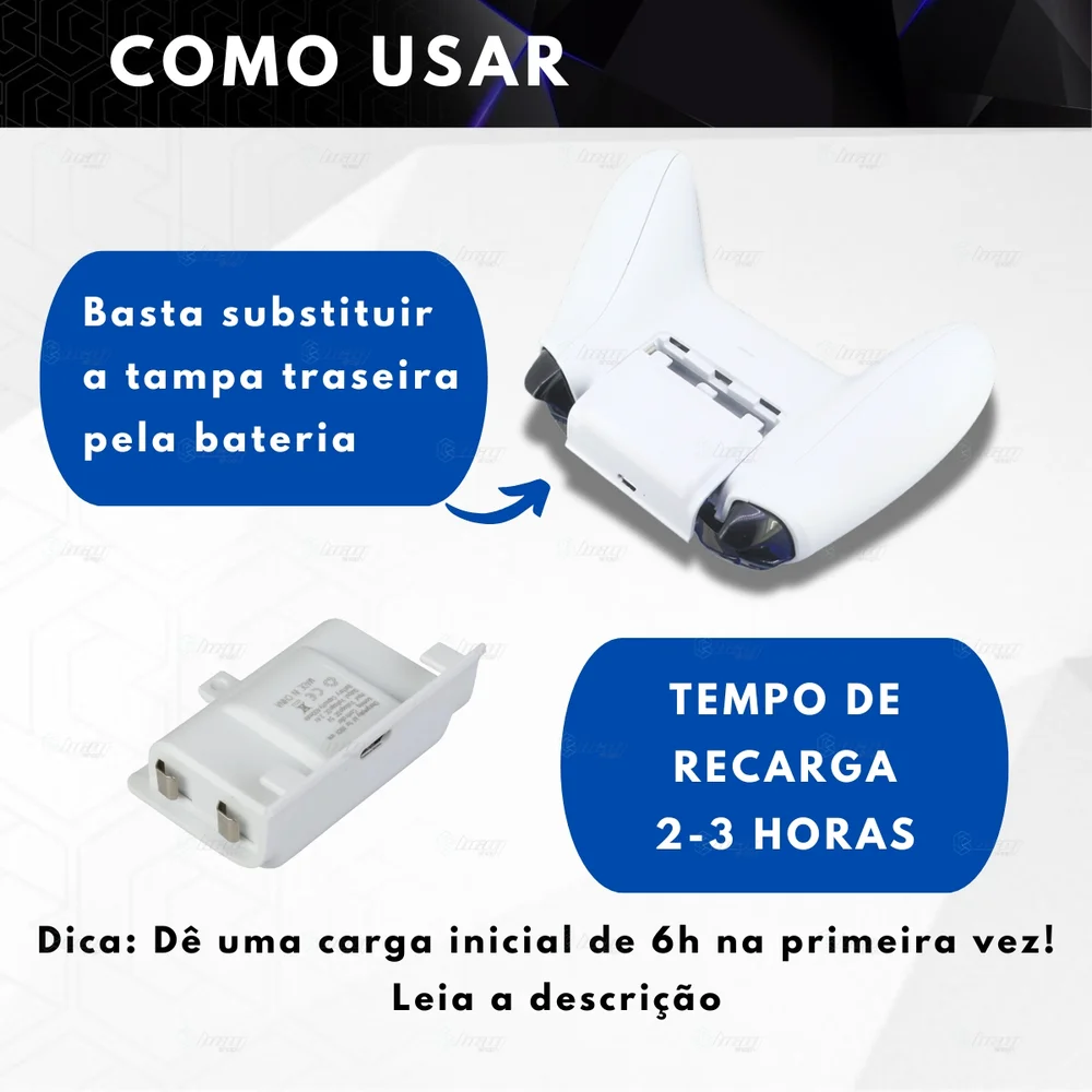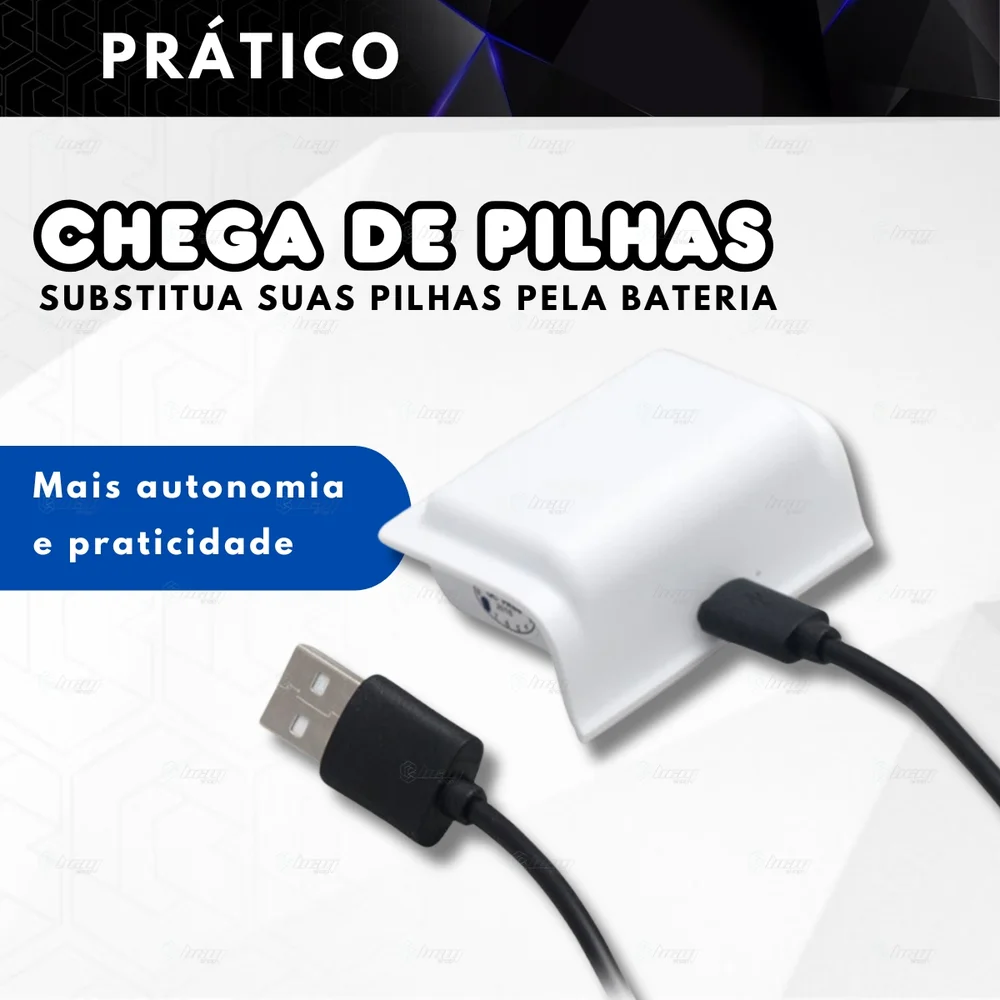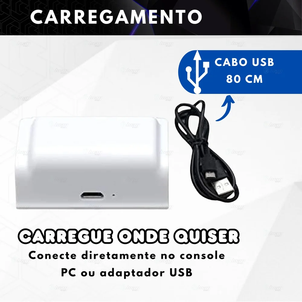 Bateria C/ Cabo Carregador Xbox One Recarregável Controle Com a bateria recarregável sua diversão irá durar muito mais tempo, sendo mais prático do que pilhas. Possui longa vida útil e pode ser recarregado até 500 vezes. A recarga pode ser feita através do próprio vídeo game e também pelo computador computador. Ela possui Led indicador, informando quando está carregada e pronta para uso. Alta vida Útil. Aconselhamos que a bateria seja carregada completamente antes do uso, dando uma primeira carga de até 6 horas. Em sua recarga, o tempo de carregamento é de 2 a 3 horas. Após a terceira recarga o uso será otimizado.