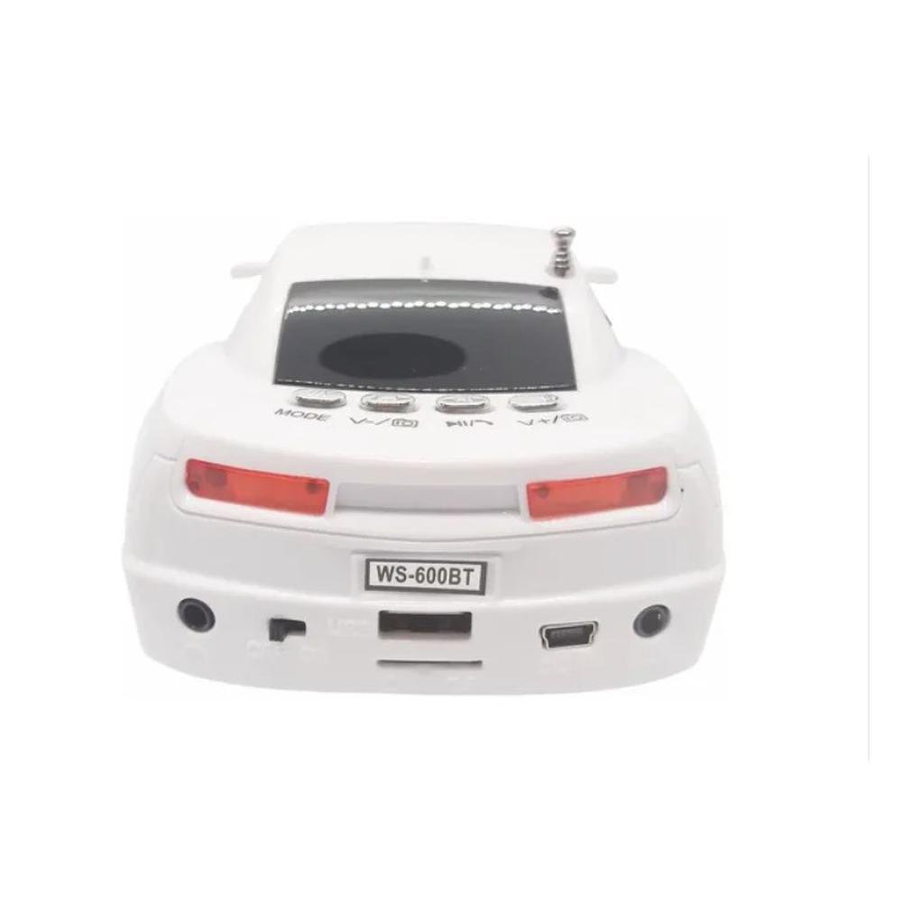 CAIXA SOM PORTATIL BLUETOOTH FM USB TF CAMARO BRANCO WS-600BT Caixa de som estilo camaro, ótimo para decoração e para quem gosta de coleção é um ótima opção. Agora você pode ter o seu camaro !!! Ouça um som limpo e marcante. Alegre seu ambiente com esta linda caixinha de som. Conecte qualquer dispositivo via conexão sem fio blue-connect, cartão SD, entrada USB, auxiliar e Rádio FM. Não dependa só da tomada, recarregue a bateria interna e a desfrute. Pode ser utilizada em Notebooks, PCs, Celulares (atende chamadas), tablets, laptops, MP3/4, etc
