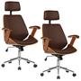 Kit 02 Cadeiras de Escritório Presidente, Pu Sintético, Marrom - Gran Belo
