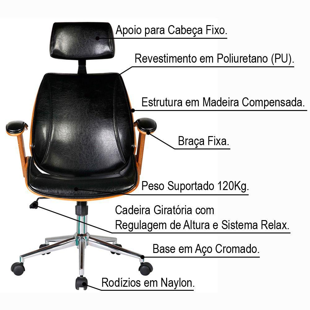 Kit 02 Cadeiras De Escritório Presidente Giratória, Pu Sintético, Preto - Gran Belo
