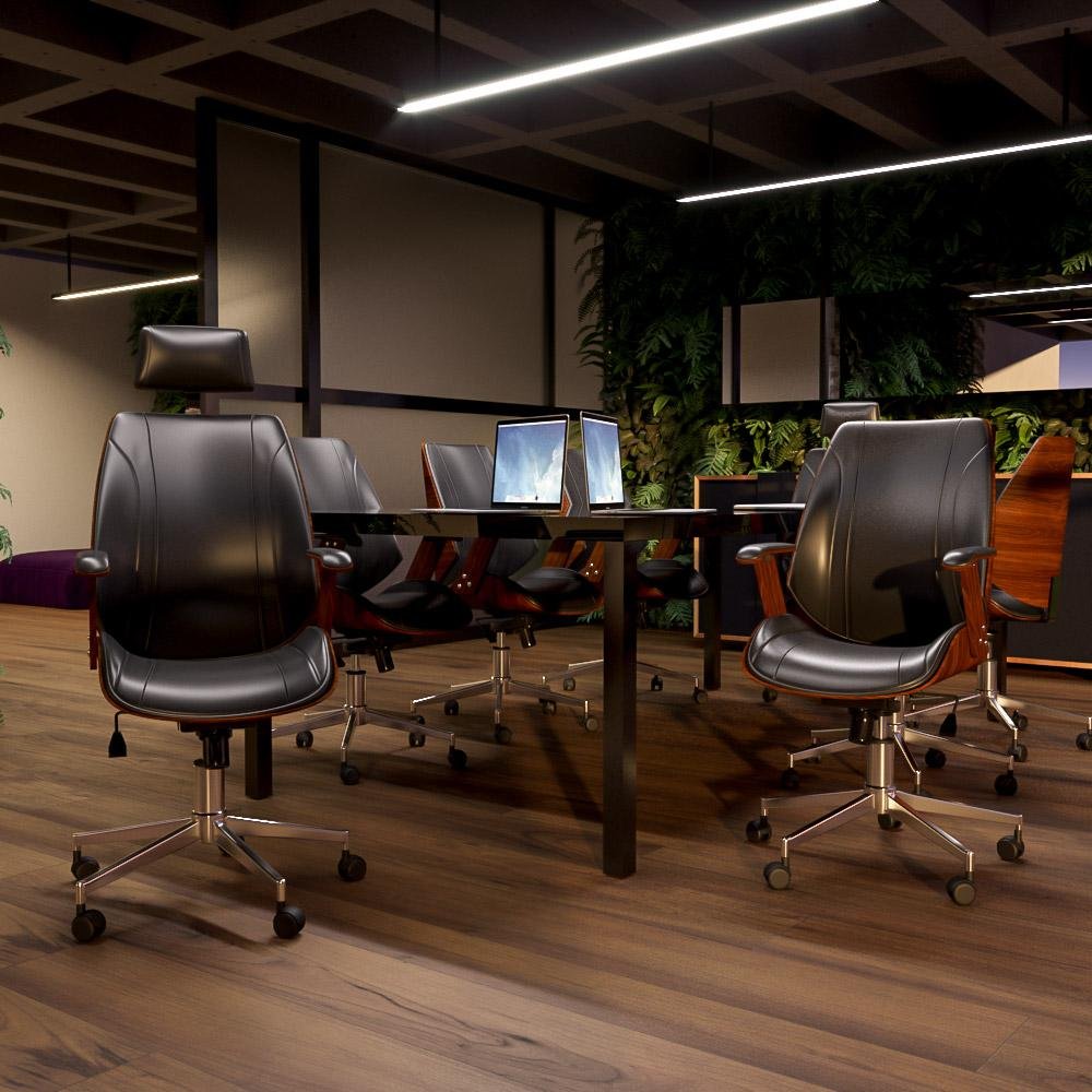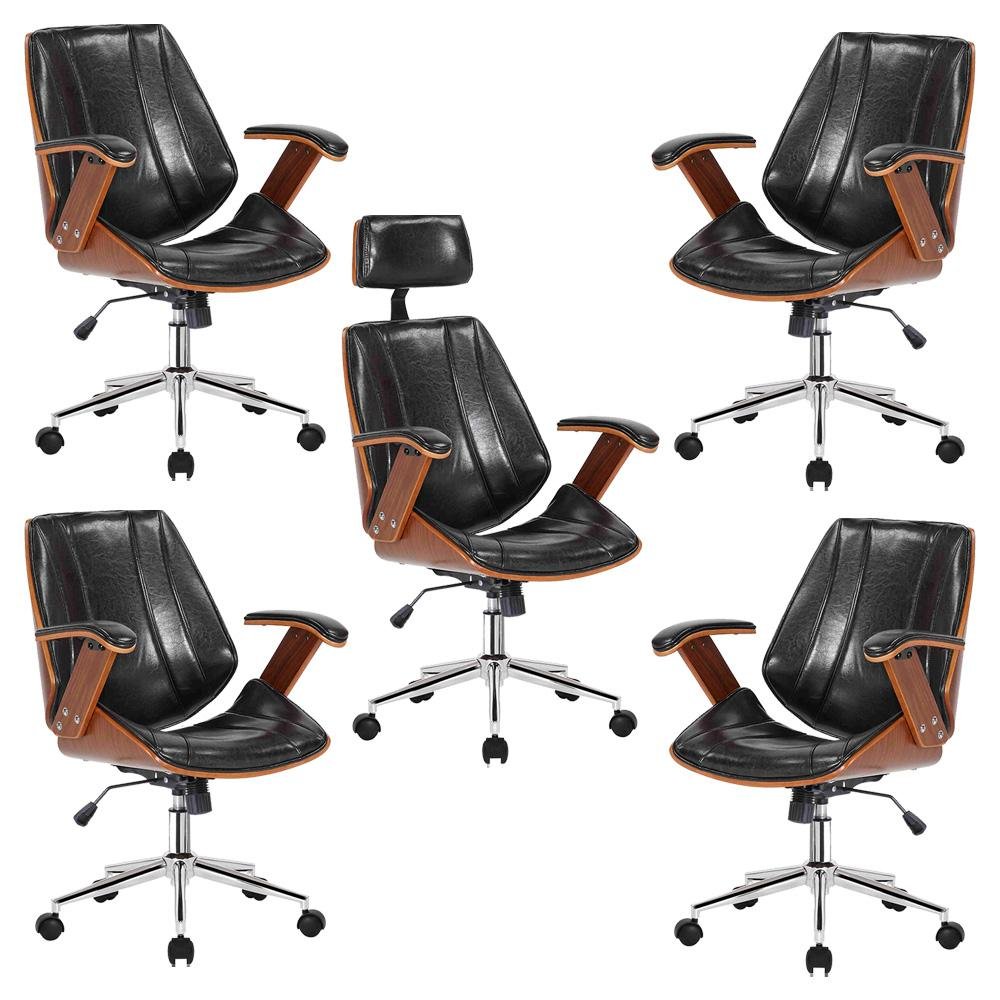 Kit 4 Cadeiras De Escritório Juliette Diretor E 1 Presidente Giratórias Preta - Gran Belo