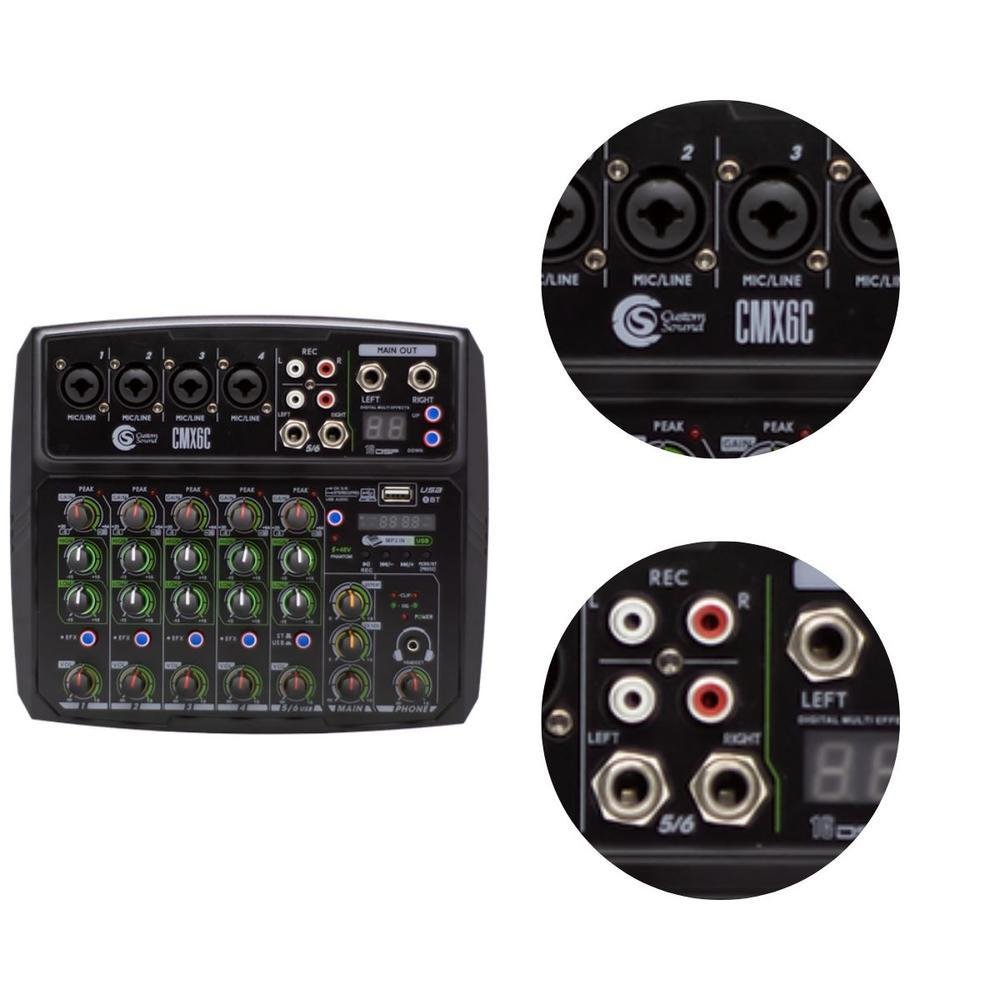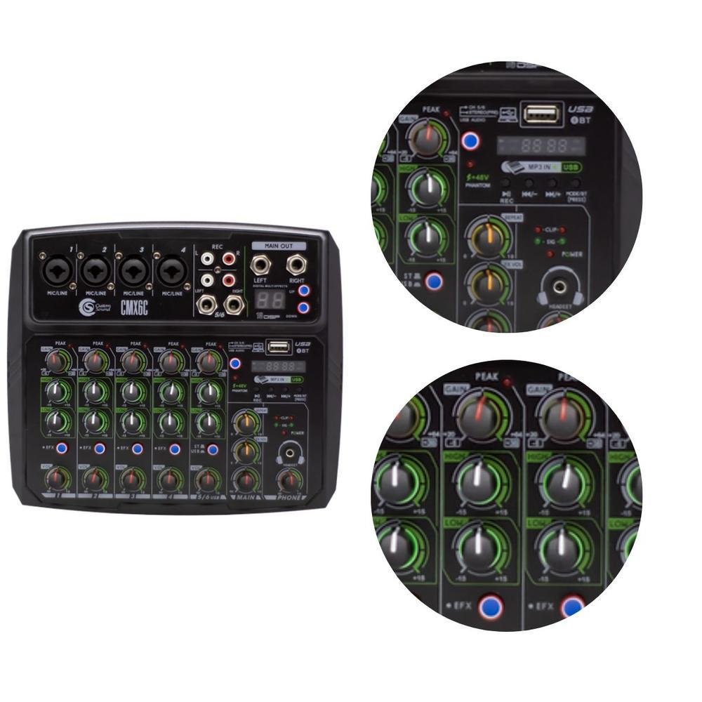 Mesa de som interface de áudio mixer 6 canais usb bt custom sound cmx 6c