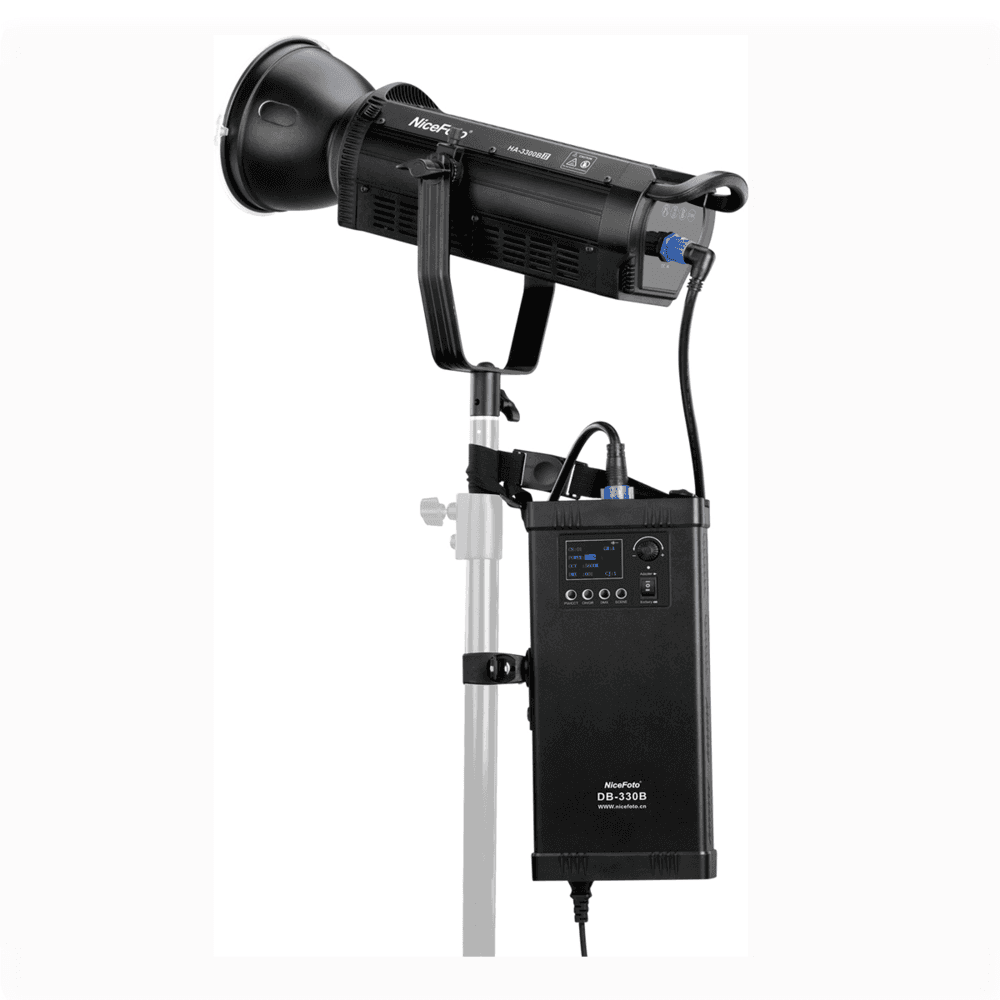 O Iluminador LED NiceFoto HA-3300BII COB Video Light Daylight 330W com Montagem Bowens possui um sistema operacional totalmente novo, com Controle Remoto 2.4G e funções de controle de aplicativo Bluetooth. Ele é alimentado por um adaptador de energia externo ou bateria de lítio V-mount (Não inclusa). O novo Iluminador Led COB (chip-on-board) tem uma longa vida útil e oferece temperaturas de cor precisas.Este Iluminador LED Profissional para Estúdio tem CRI de &ge96 e TLCI de &ge96 que oferece cores precisas para trabalho de vídeo e foto, para que você possa gastar menos tempo na pós-produção. O Iluminador LED COB HA-3300B II da NiceFoto também suporta a função DMX.O desempenho da luz é estável e confiável, é fixada com ventilador elétrico interno e corpo de alumínio. Esta Luz Led COB é adequada para uma ampla gama de trabalhos de foto e vídeo, como transmissão de TV, estúdios profissionais, fotografia comercial, vídeos do YouTube e muito mais
