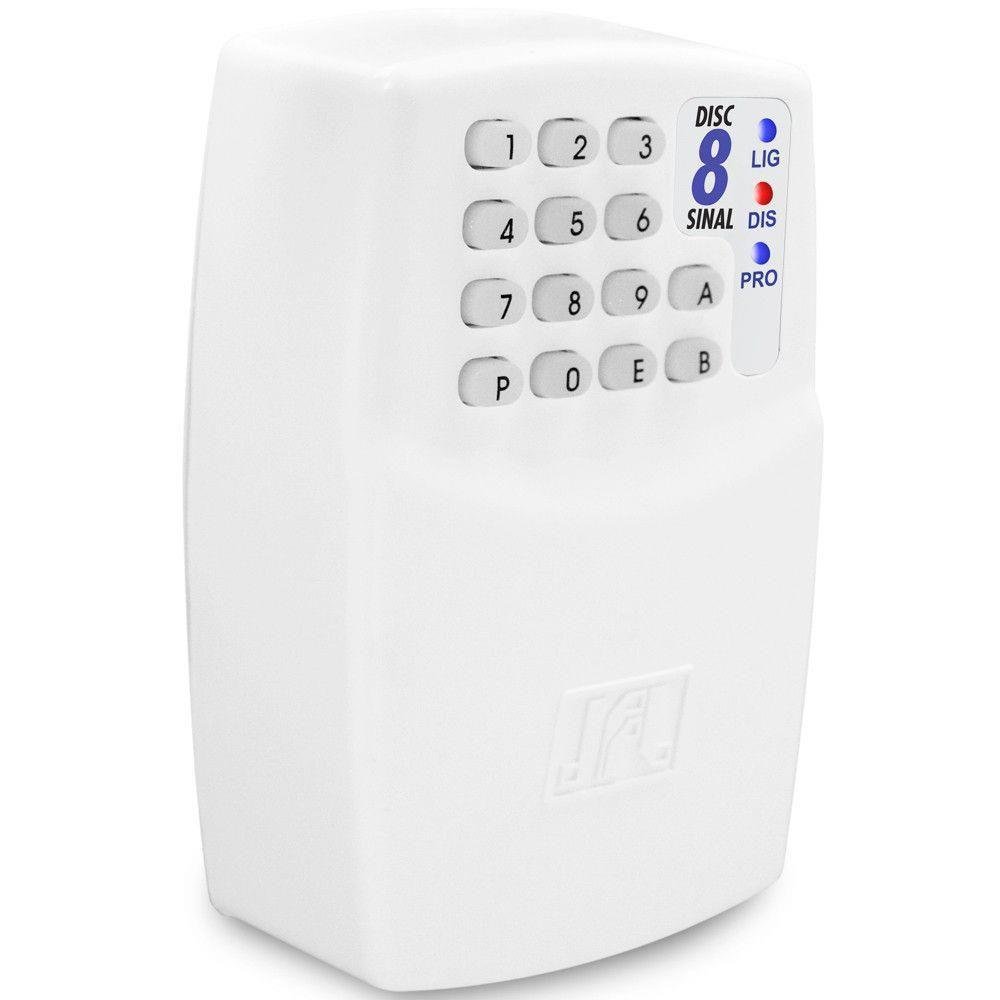 A discadora Disc-8 é um aparelho eletrônico que disca para até 8 (oito) números telefônicos que você mesmo pode programar. O intervalo entre uma discagem e outra é de aproximadamente 1 minuto. Uma vez discado o número (pulse ou tone), um sinal eletrônico será reproduzido para a identificação da chamada.