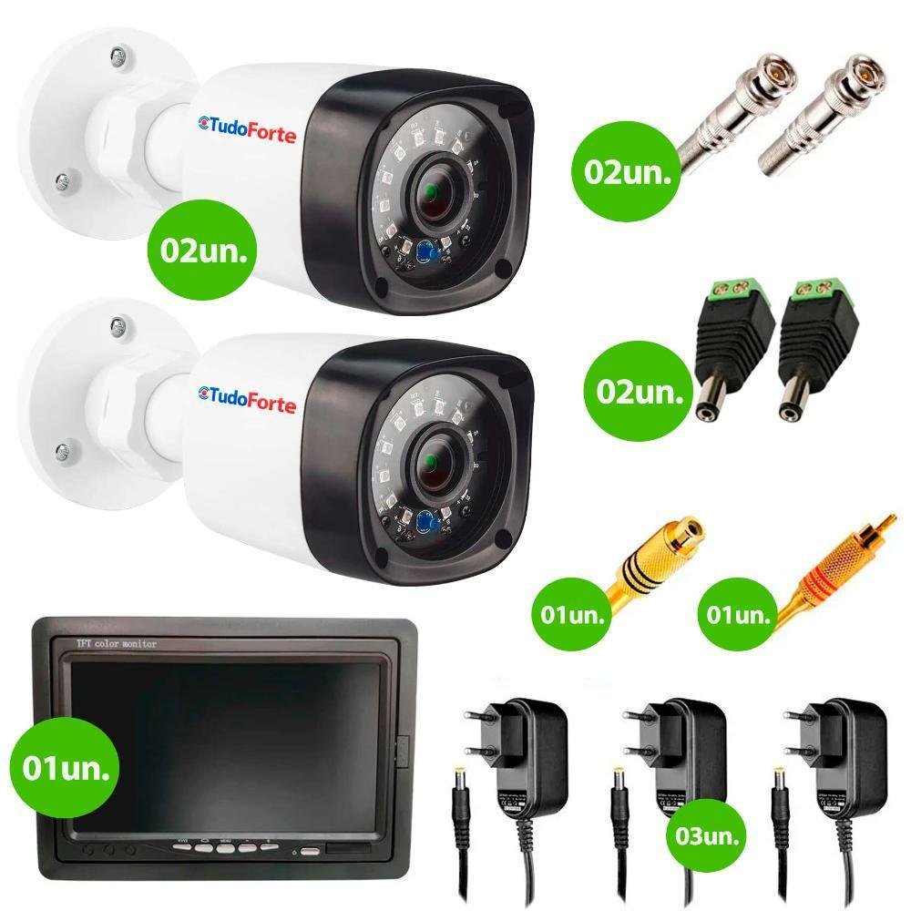 Kit 02 Câmeras Infra Bullet, Tela Monitor 7 Polegadas Lcd Colorido e Acessórios