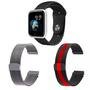 Kit 1 Relógio Smartwatch P70 Monitor de Saúde Prata Android iOS + 2 Pulseiras Milanesa Prata e Listrado