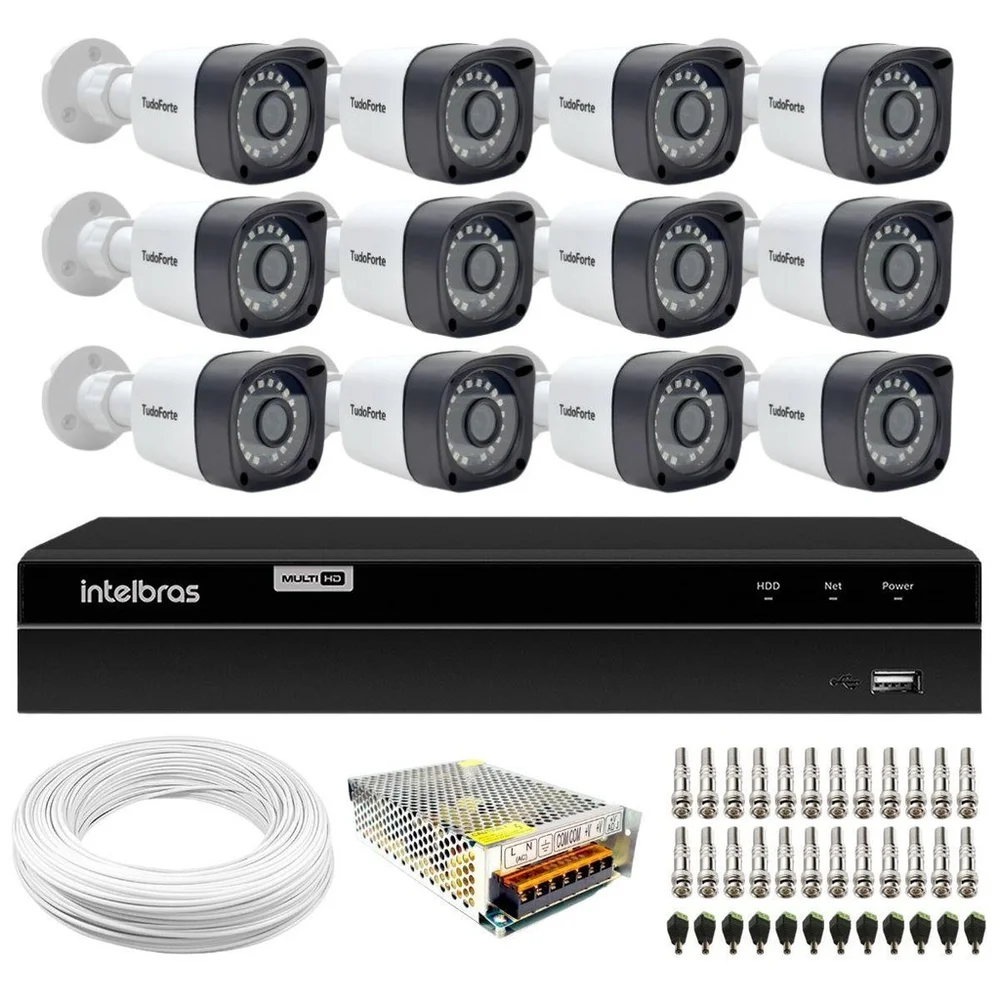 Kit 12 Câmeras HD 720p 20m Visão Noturna e DVR Intelbras