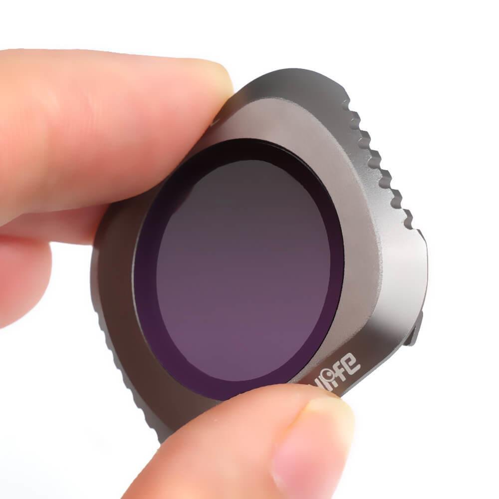 Os filtros ND-PL reduzem a quantidade de luz em condições de muito brilho para que a câmera possa escolher o valor de exposição correto e evitar a exposição excessiva, proporcionando ao fotógrafo um tempo de exposição prolongado e eliminando a luz polarizada. Os filtros da marca Sunnylife utilizam o vidro óptico alemão de alta qualidade, com ótima transparência e uniformidade. A estrutura é feita em alumínio leve e durável, e apresenta boa estabilização e segurança durante a captura de imagens. O revestimento da lente é impermeável à prova de água, óleo, e também garante resistência a riscos. A montagem é rápida e prática, basta encaixar o filtro no gimbal do Drone e girar para o lado, para prender com segurança. Cada filtro pesa pouco mais de 1 grama e não afeta o desempenho da câmera ou o alcance do voo.