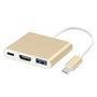 Adaptador 1 Porta tipo-C para 3 portas (1 Hdmi, 1 Usb 3.0, 1 fê,mea tipo C)Permitir que você, espelhe a exibiç,ã,o do seu laptop tipo-C para uma tela Hdmi, suportando 4K x 2K 30Hz resoluç,ã,oConecte-se com a unidade flash via porta Usb 3.0A interface Usb 3.0 possui 5Gbps de transmissã,o de dados de alta velocidadePode ligar um cabo de carregamento à, porta Tipo-C para carregar o seu MacBook també,m (20V / 30A)Conector tipo-C reversí,vel permite que você, conecte de maneira certa toda vezPlug and play, fá,cil e conveniente