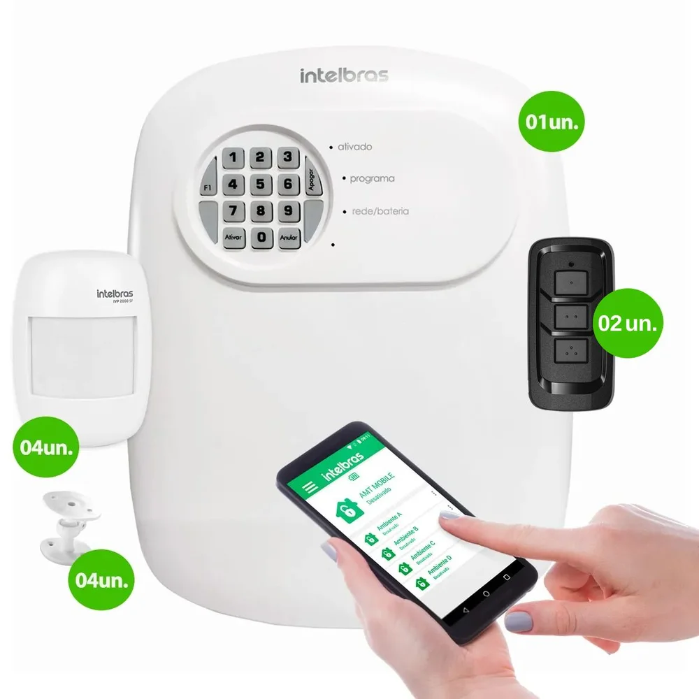 Kit Central De Alarme Anm 24 Net 4 Sensores Infravermelho Ivp 2000 Sf Intelbras Sf Alcance De 12mts
