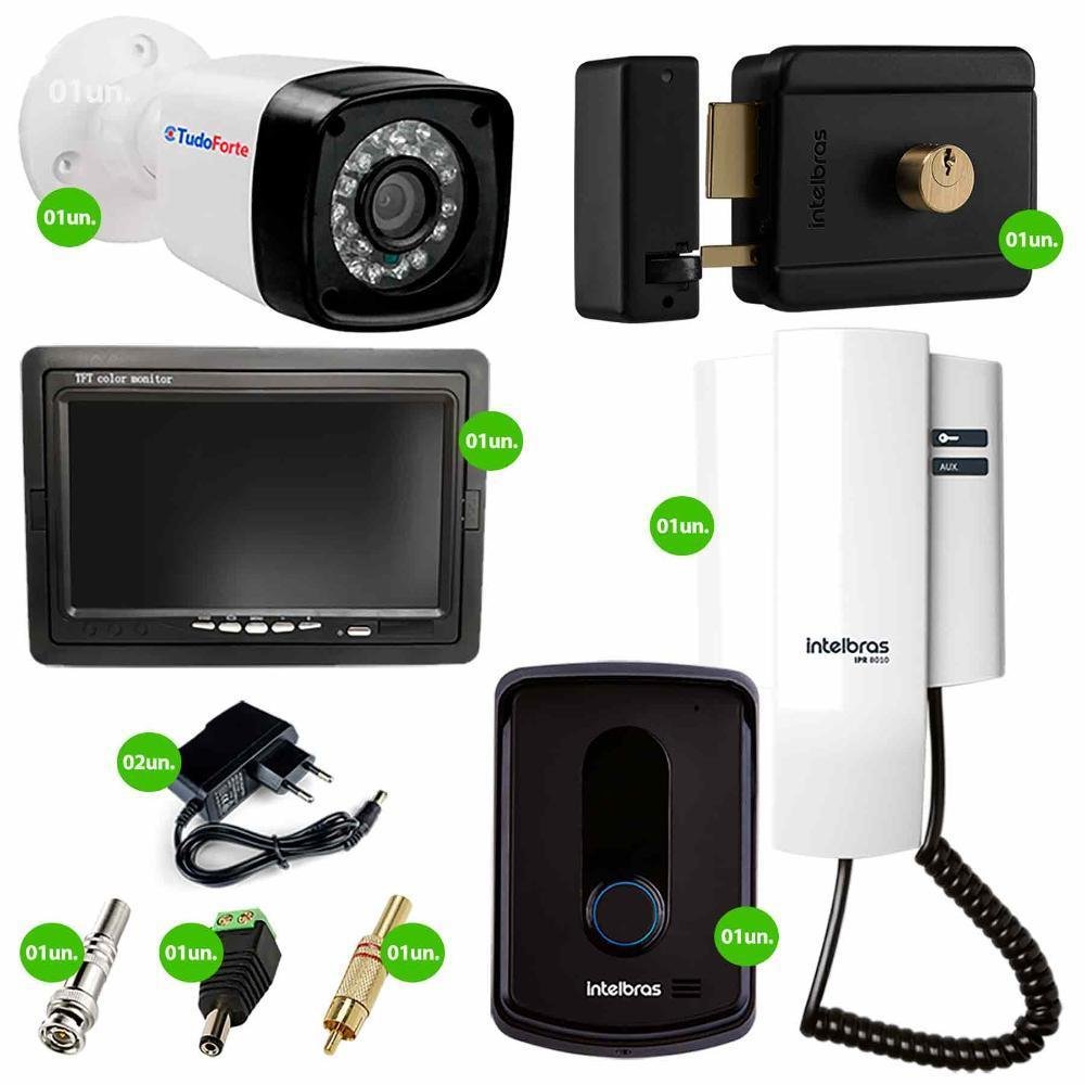 Kit Video Porteiro Intelbras Ipr 8010, Câmera Infra Bullet, Tela Monitor 7, Fechadura Fx 500