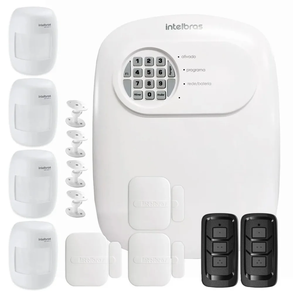 A ANM 24 NET é, uma central de alarme nã,o monitorada com supervisã,o do sistema sem fio e conexã,o via nuvem, que proporciona ao usuá,rio acompanhamento em tempo real de tudo que ocorre em sua casa, escritó,rio ou empresa. Pode ser conectada a sensores de abertura, infravermelho, impacto e outros. Possui receptor incorporado, fonte chaveada &ldquo,full range&rdquo, (automá,tico) e carregador inteligente de bateria com proteç,ã,o contra curto-circuito ou inversã,o de polaridade. Conteú,do do Kit 01 Central de alarme ANM 24 NET Intelbras 02 Controle Remoto Intelbras XAC 4000 Smart Preto 03 Sensor Magné,tico de Abertura de Porta e Janela XAS 4010 Smart Intelbras Sem Fio 04 Sensor de Presenç,a Infravermelho IVP 3000 CF Intelbras Com Fio Passivo Alcance de 12mts 03 Articulador Conexã,o Via Nuvem Acompanhe em tempo real o status de seu sistema de alarme de qualquer lugar. Mais facilidade na programaç,ã,o e cadastro dos dispositivos Cadastro facilitado dos controles e sensores atravé,s de botã,o na placa da central ou pelo aplicativo. Possibilidade de toda configuraç,ã,o da central de alarme pelo AMT Remoto Mobile. Simplicidade na palma da mã,o Atravé,s de seu smartphone, programe e opere seu sistema de forma prá,tica e intuitiva, ativando, desativando, interagindo e recebendo notificaç,õ,es. Sensor Magné,tico de Abertura de Porta e Janela XAS 4010 Smart Com design diferenciado, discreto e compacto, o XAS 4010 SMART acompanha bateria de lí,tio de longa duraç,ã,o com indicador de bateria fraca no sensor e identifica intrusõ,es e arrombamentos em portas e janelas de vidro ou madeira. Quando integrado ao sistema SMART, torna-se possí,vel també,m a supervisã,o de abertura/fechamento, ní,vel de bateria, supervisã,o de entupimento de canal e sistema anti-Jamme. Sensor de Presenç,a Infravermelho IVP 3000 CF Intelbras Com Fio Passivo Alcance de 12mts Com â,ngulo de cobertura de 115°, e alcance de 12 metros, oferece seguranç,a completa e eficiente do perí,metro.Atravé,s da compensaç,ã,o de temperatura proporciona eficiê,ncia e confiabilidade nas detecç,õ,es em ambientes internos.