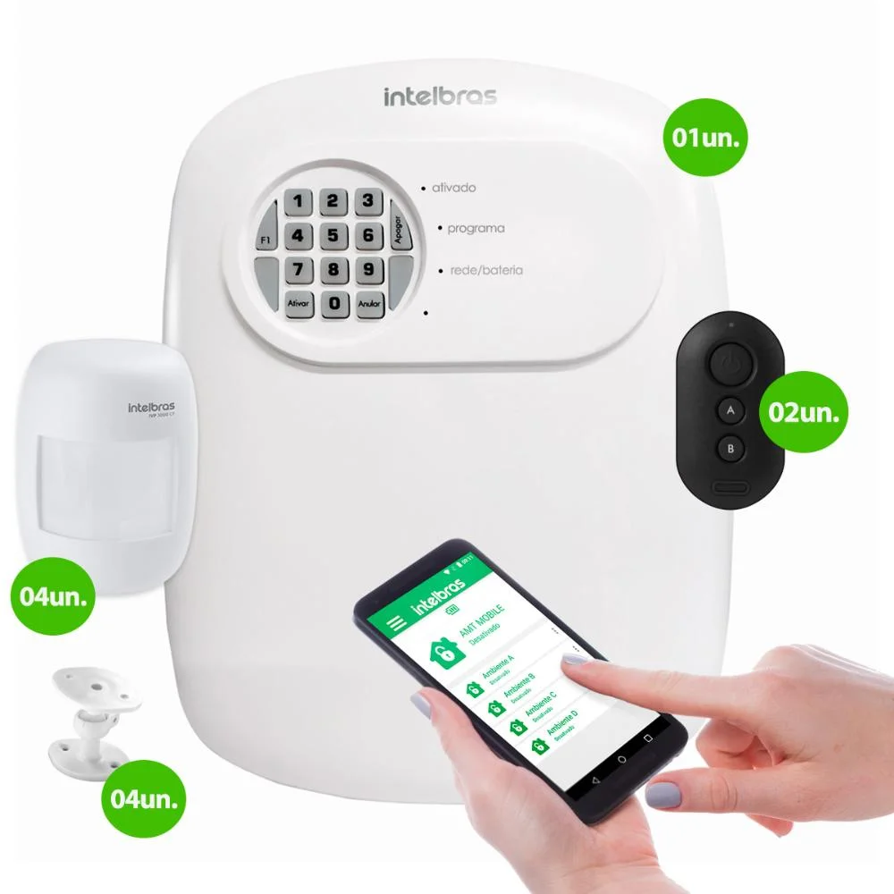 Kit Central De Alarme Anm 24 Net Intelbras + 4 Sensores Ivp 3000 Cf Alcance De 12mts
