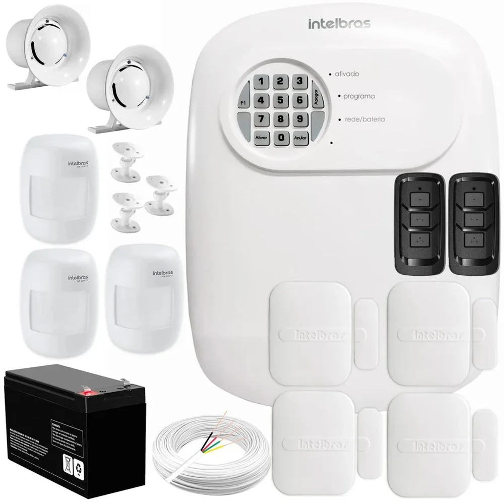 A ANM 24 NET é, uma central de alarme nã,o monitorada com supervisã,o do sistema sem fio e conexã,o via nuvem, que proporciona ao usuá,rio acompanhamento em tempo real de tudo que ocorre em sua casa, escritó,rio ou empresa. Pode ser conectada a sensores de abertura, infravermelho, impacto e outros. Possui receptor incorporado, fonte chaveada &ldquo,full range&rdquo, (automá,tico) e carregador inteligente de bateria com proteç,ã,o contra curto-circuito ou inversã,o de polaridade. Conteú,do do Kit 01 Central de alarme ANM 24 NET Intelbras 02 Controle Remoto Intelbras XAC 4000 Smart Preto 04 Sensor Magné,tico de Abertura de Porta e Janela XAS 4010 Smart Intelbras Sem Fio 03 Sensor de Presenç,a Infravermelho IVP 3000 CF Intelbras Com Fio Passivo Alcance de 12mts 03 Articulador 01 Cabo de Alarme 4 Vias 0,40mm - 100 metros 01 Bateria Para Central de Alarme 12v 02 Sirene Compacta de Alta Potê,ncia 12v Conexã,o Via Nuvem Acompanhe em tempo real o status de seu sistema de alarme de qualquer lugar. Mais facilidade na programaç,ã,o e cadastro dos dispositivos Cadastro facilitado dos controles e sensores atravé,s de botã,o na placa da central ou pelo aplicativo. Possibilidade de toda configuraç,ã,o da central de alarme pelo AMT Remoto Mobile. Simplicidade na palma da mã,o Atravé,s de seu smartphone, programe e opere seu sistema de forma prá,tica e intuitiva, ativando, desativando, interagindo e recebendo notificaç,õ,es. Sensor Magné,tico de Abertura de Porta e Janela XAS 4010 Smart Com design diferenciado, discreto e compacto, o XAS 4010 SMART acompanha bateria de lí,tio de longa duraç,ã,o com indicador de bateria fraca no sensor e identifica intrusõ,es e arrombamentos em portas e janelas de vidro ou madeira. Quando integrado ao sistema SMART, torna-se possí,vel també,m a supervisã,o de abertura/fechamento, ní,vel de bateria, supervisã,o de entupimento de canal e sistema anti-Jamme. Sensor de Presenç,a Infravermelho IVP 3000 CF Intelbras Com Fio Passivo Alcance de 12mts Com â,ngulo de cobertura de 115°, e alcance de 12 metros, oferece seguranç,a completa e eficiente do perí,metro.Atravé,s da compensaç,ã,o de temperatura proporciona eficiê,ncia e confiabilidade nas detecç,õ,es em ambientes internos. Caracterí,sticas Sensor IVP 3000 CF Aplicaç,ã,o em ambientes internos Compensaç,ã,o de temperatura automá,tica Inclinaç,ã,o vertical em 15°, Baixo custo Â,ngulo de proteç,ã,o de 115°