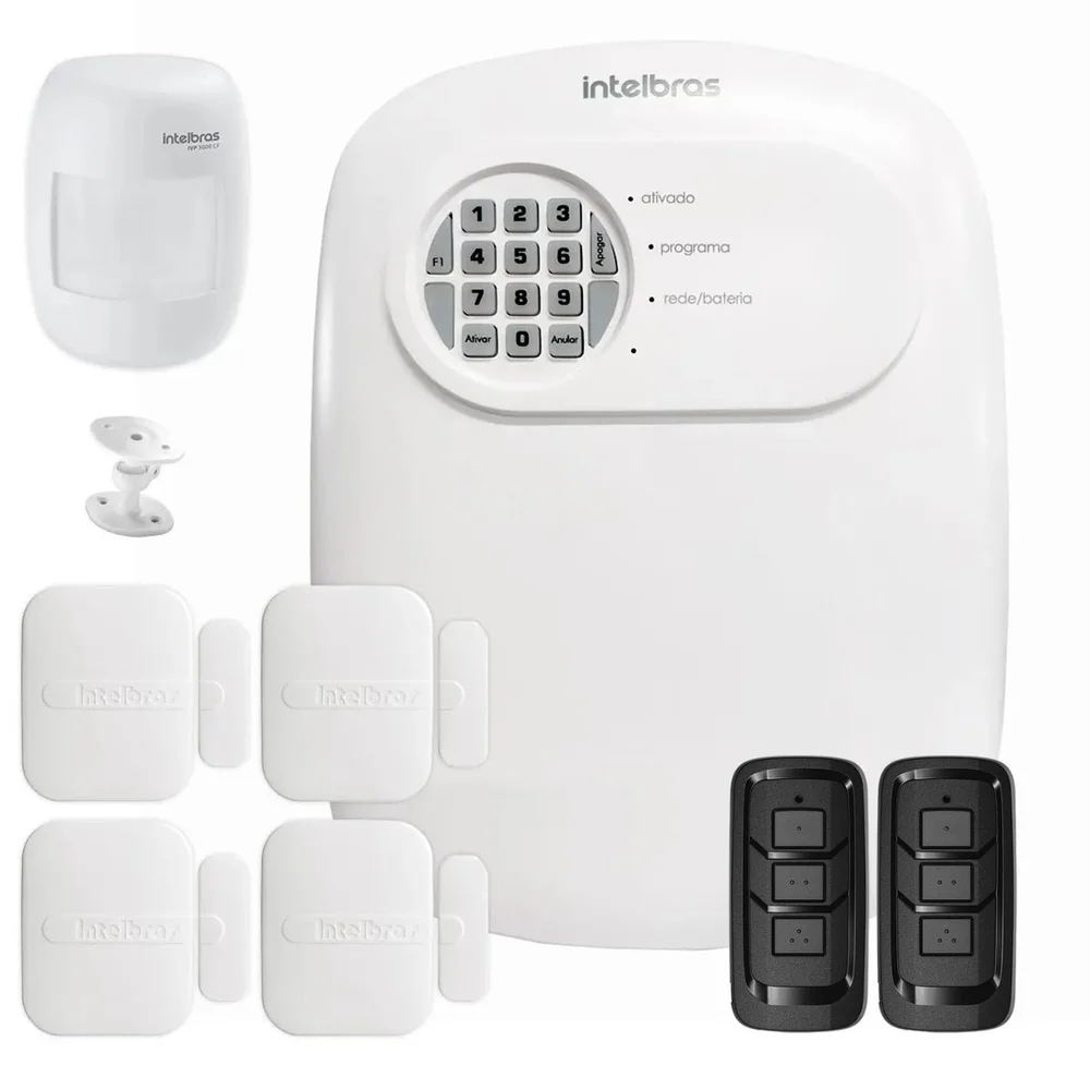 Kit Central De Alarme Anm 24 Net Intelbras + 4 Sensores Xas 4010 Smart + 1 Sensor Ivp 2000 Sf