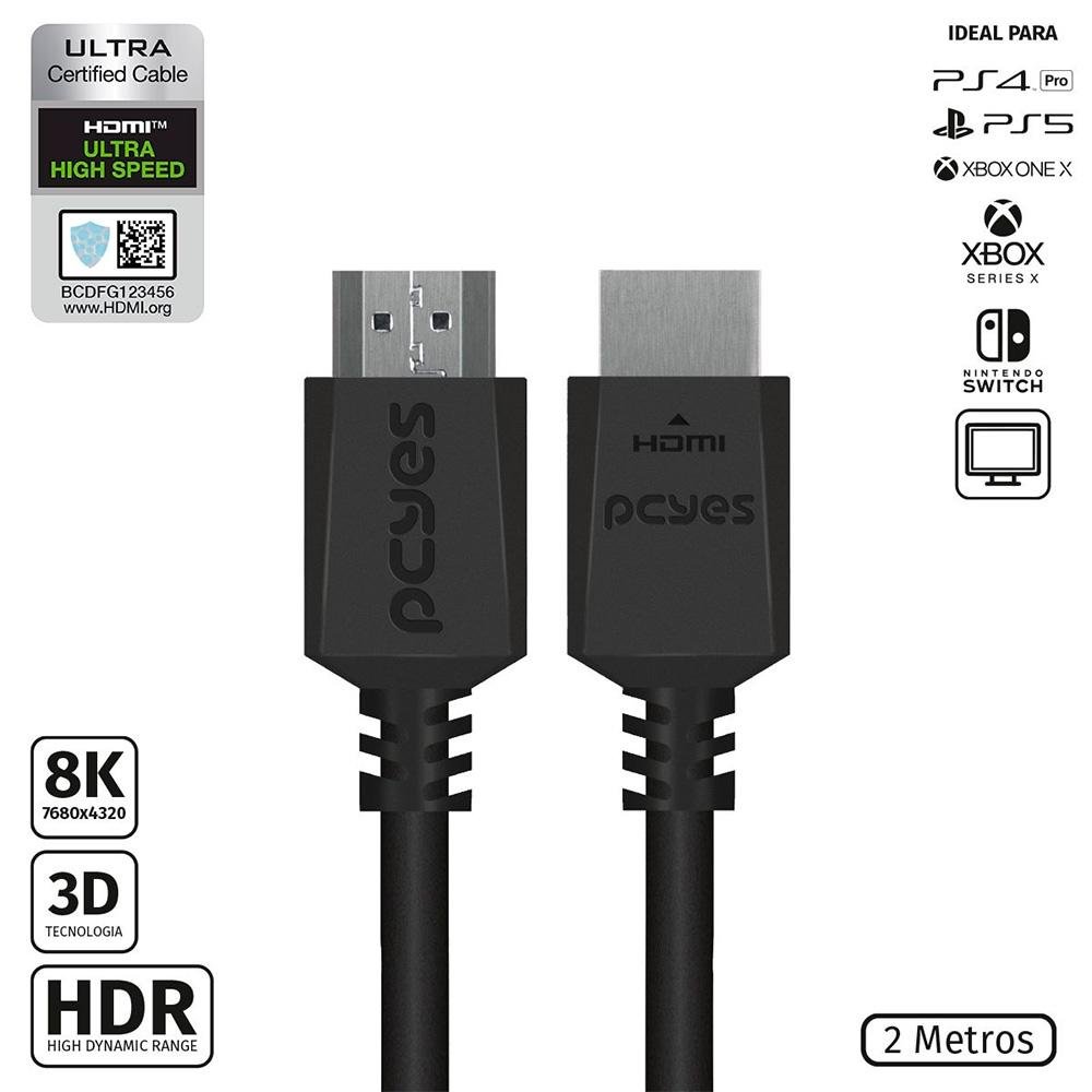 Cabo HDMI 2.1 UltraHD PCYes, 4K 144hz, 2 Metros, Preto - PHM8K-2
