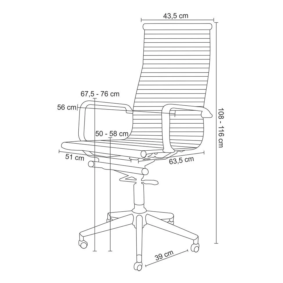 Cadeira Alta Oficce PU Sevilha -Rivatti A Cadeira Office Sevilha Alta da Rivatti vai trazer mais ergonomia e conforto para você passar horas sentado nela, seja no seu home office ou no escritório da empresa. A cadeira suporta até 120 kg de peso máximo, proporcionando mais tranquilidade ao sentar. Ela ainda vem com 5 rodízios em nylon, base giratória de aço cromado e braços, o que dá mais segurança e conforto no dia a dia. O produto tem estrutura e acabamento em aço cromado e poliuretano de altíssima qualidade, que proporciona muito mais resistência, além de dar mais charme ao ambiente. Essa cadeira é reclinável, proporcionando mais ergonomia para trabalhar. Aposte em uma solução inovadora que vai deixar seu escritório mais sofisticado. Compre já a Cadeira Office Sevilha Alta da Rivatti. Altura extensível 1,05 cm á 1,15 cm Imagem meramente ilustrativa. Produto refere-se somente a Cadeira Alta Oficce PU Sevilha-Rivatti.