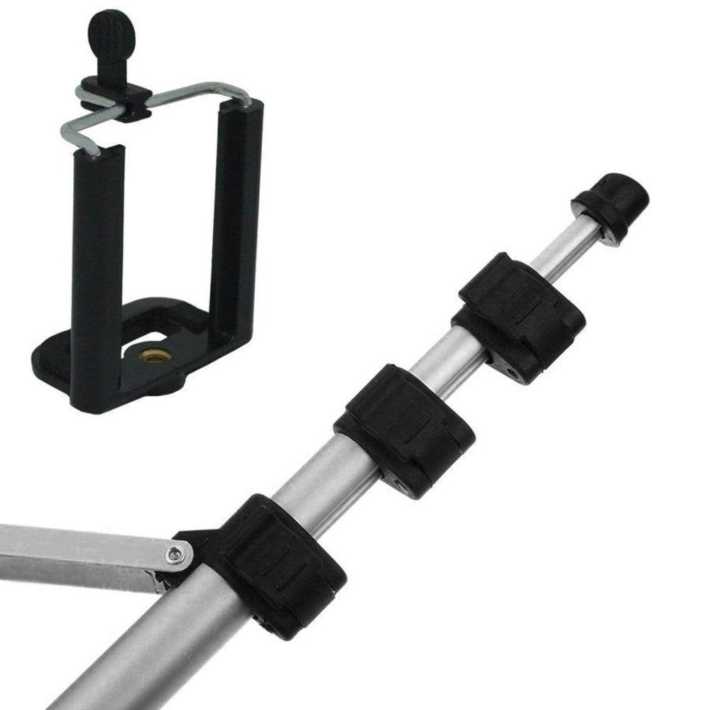 O tripé, para má,quinas fotográ,ficas e smartphones foi desenvolvido com hastes em alumí,nio e pode chegar à, altura de até, 1,02 metros e suporta equipamentos de até, 9 Kg. Ele é, equipado com niveladore de bolha para o equipamento fotográ,fico. Ele ainda conta com cabeç,a niveladora com rotaç,ã,o de 360°, e hastes com inclinaç,ã,o de 85°,, que permitem captar imagens pró,ximas ao ní,vel do solo.Extremamente leve e robusto, proporciona comodidade no transporte e estabilidade na hora do disparo da fotografia. O equipamento possui travas de elevaç,ã,o e de inclinaç,ã,o vertical, pernas retrá,teis com ajuste em 4 alturas e haste central com encaixe retrá,til na base.O tripé, vem acompanhado de um adaptador para smartphone, que permitirá, a gravaç,ã,o de momentos incrí,veis e com muita mobilidade.