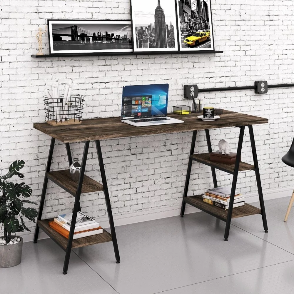 Pensando nisso, a Mpozenato desenvolveu a Mesa Cavalete Prisma para trazer inovação e funcionalidade ao seu dia a dia de trabalho e estudos. Essa mesa de Escritório Home Office conta com uma estrutura metálica slim, sendo os pés cavaletes confeccionados em Aço, com soldas suavizadas e pintura epóxi na cor Preta, além dos niveladores de altura. Já o tampo engrossurado de 30mm e as prateleiras na cor Carvalho Dark são fabricados em MDP com acabamento BP acetinado, garantendo maior durabilidade e resistência ao produto.