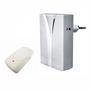 Coloque a Campainha Eletrônica Sem Fio na tomada e retire do acionador o plástico que impede o descarregamento da bateria. Ela comunica-se com o acionador por meio de ondas de rádio, chegando ao alto alcance de até 50m em áreas livres.