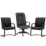 Kit - Cadeira De Escritório Presidente, Com 02 Cadeiras Fixas, New Onix F02, Couro Ecológico Preto - Lyam Decor
