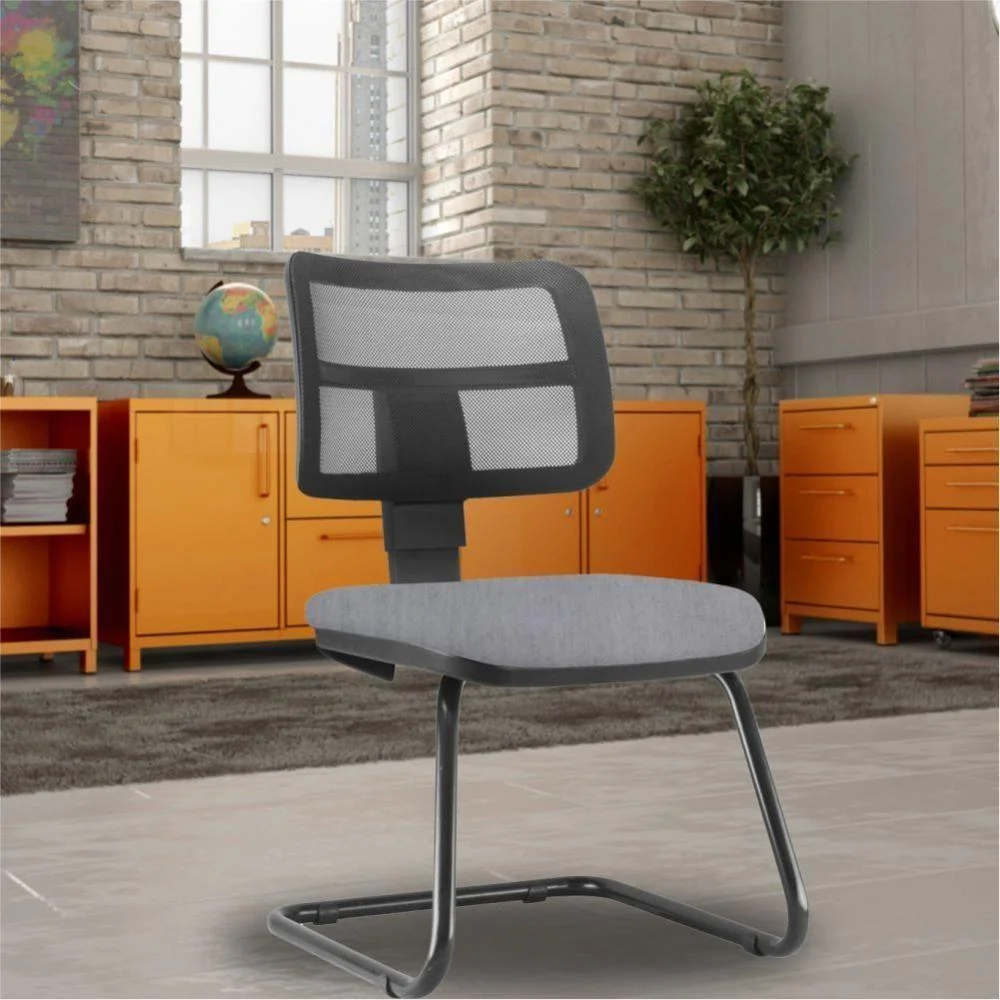 Cadeira De Escritório Recepção Fixa Zip L02, Linho, Cinza - Lyam Decor