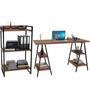 Kit Mesa Cavalete 135 Cm Com Estante 3 Prateleiras Estilo Industrial Form C01 Nogal - Lyam Decor