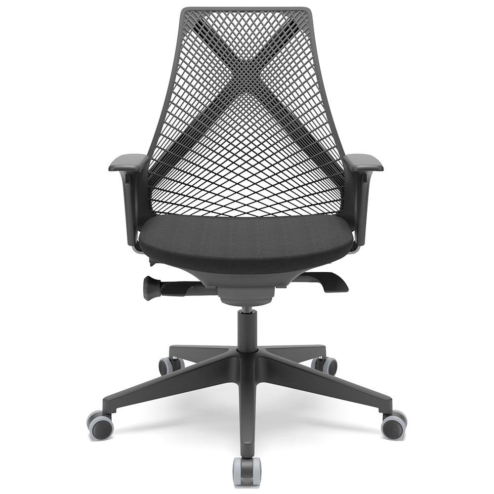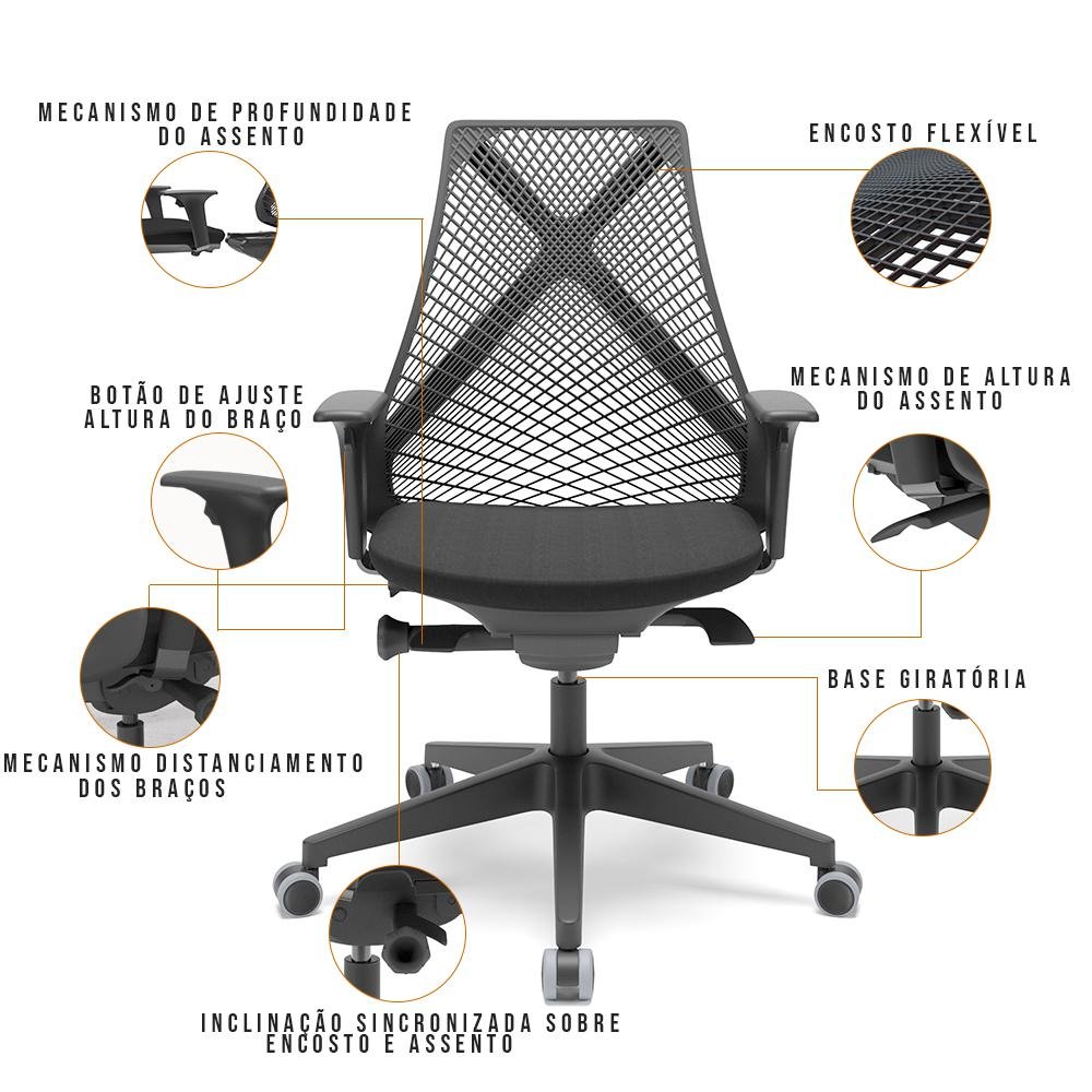 A Cadeira Giratória Kron possui inúmeros recursos ergonômicos, como o mecanismo autocompensador com função de regulagem automática por peso/pessoa, sendo que a posição nº4 absorve 80% dos biotipos com peso corporal na ordem de 65 a 110kg sem necessidade de ajuste. Conta também comflutuação Free Floating que mantém o encosto sempre em contato e sob pressão do usuário. Possuisistema anti-impacto, preservando a segurança no uso, além de um incrível nível de conforto no assento associado a resiliência da espuma flexível de retorno elástico sem deformação ao longo das horas de trabalho. Seu encosto proporciona a sustentação necessária da região de apoio lombar, que se modela de forma agradável e anatômica aos mais variados biotipos de usuários. Obtenha um nível de conforto superior e modernidade com a Cadeira Para Escritório Kron.