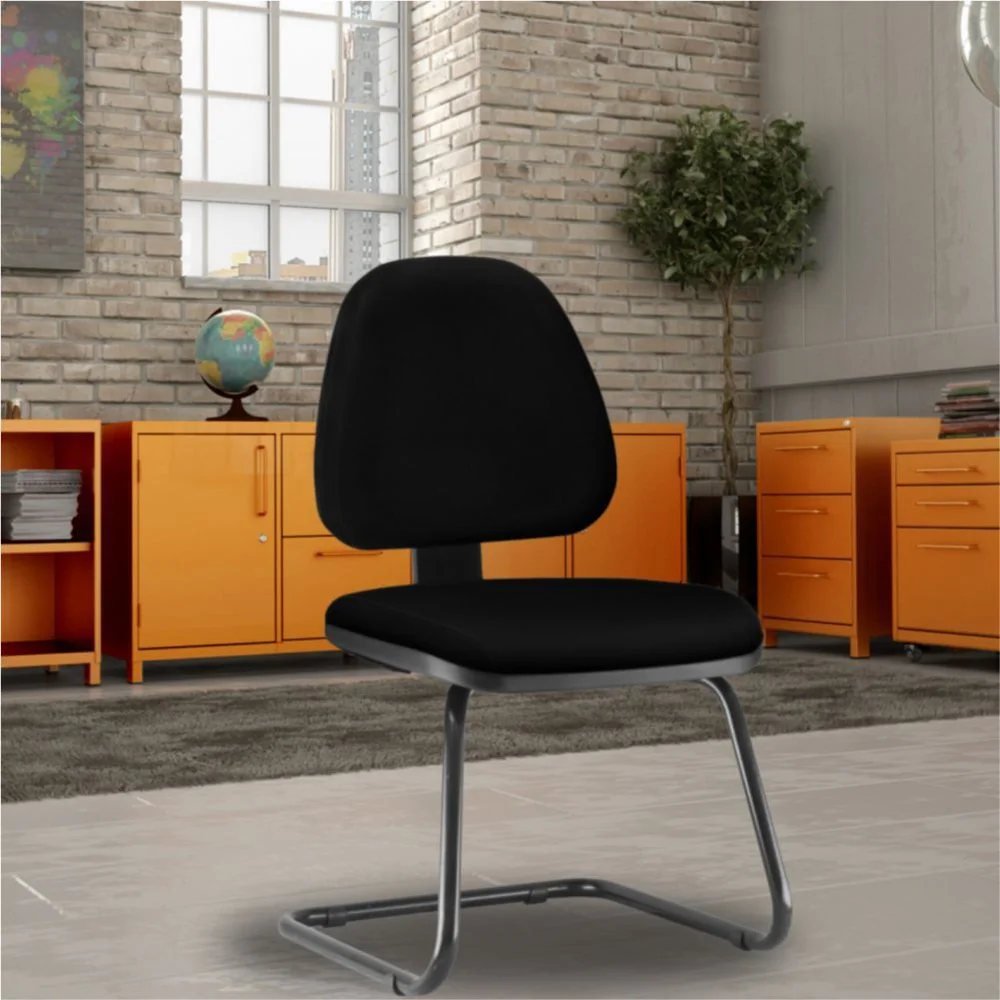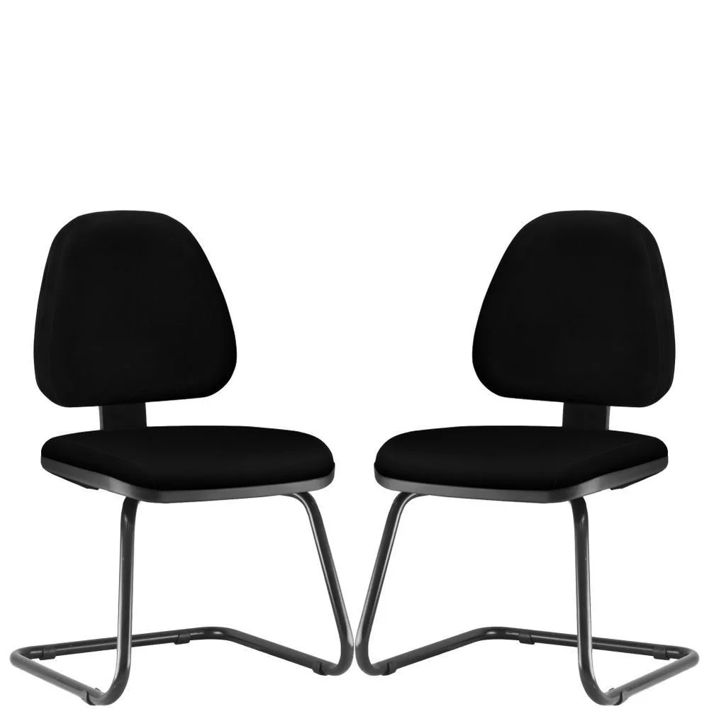 Kit 02 Cadeiras Para Escritório Sky L02 Fixa Crepe Preto - Lyam Decor