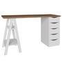 Mesa Para Escritório Escrivaninha Home Office 05 Gavetas Spirit Nogal A02 Branco - Lyam Decor