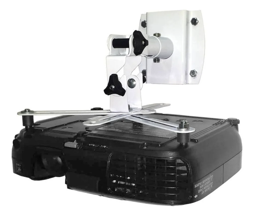 Suporte de teto ou parede para projetor. Acompanha braço prolongador, é moderno, prático e funcional. Com ele você irá maximizar a qualidade de imagem do seu projetor, garantindo maior estabilidade e precisão. Pode ser instalado no teto ou na parede! Suporte para projetores branco, com braço prolongador incluso. Permite inclinação e rotação..