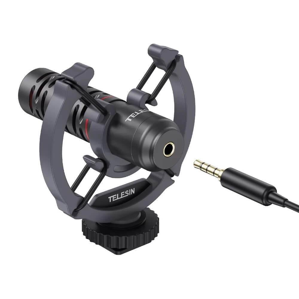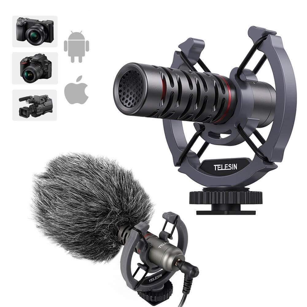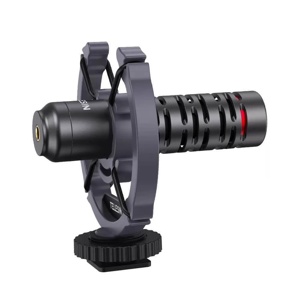 Este microfone externo cardioide ou unidirecional da Telesin é mais focado na captura do som proveniente da frente, suavizando o ruído que vem do fundo e dos lados da cápsula. Trata-se de um microfone Shotgun, potente para a captura de áudio com boa qualidade em qualquer ambiente, pois mesmo nos locais abertos permite utilizar um protetor de pelos sobre ele para evitar barulhos trazidos causado pelo sopro do vento. É leve e não exige muito de sua câmera fotográfica ou filmadora.