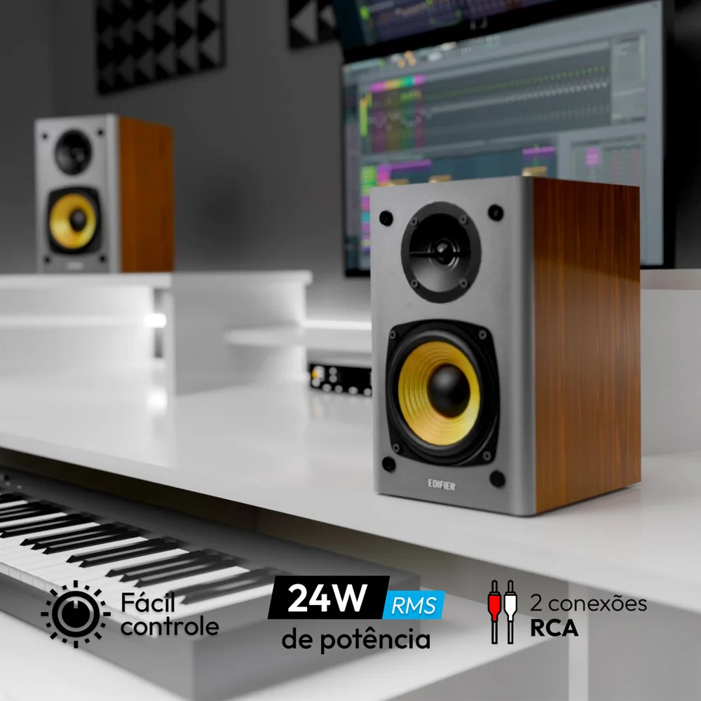Monitor De Áudio R1000t4 EDIFIER, Bivolt, 24W RMS de Potência - Madeira